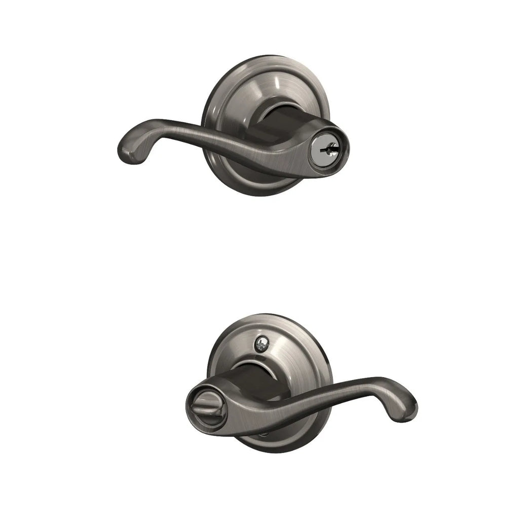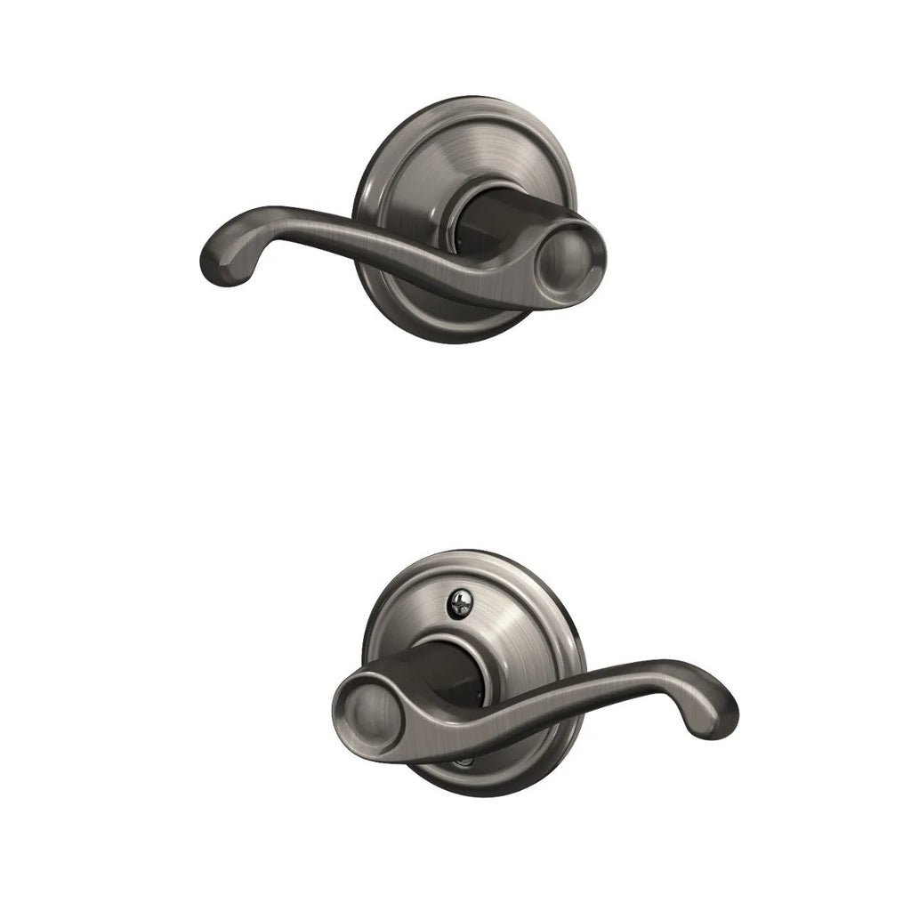 Bring traditional sophistication to your doors with the Schlage Flair Lever. Featuring the gracefully curved Flair lever paired with a classic round rosette, this design adds a luxurious touch to any interior. Easy to install, the Flair lever is crafted for durability and offered in a variety of rich finishes to match your décor.