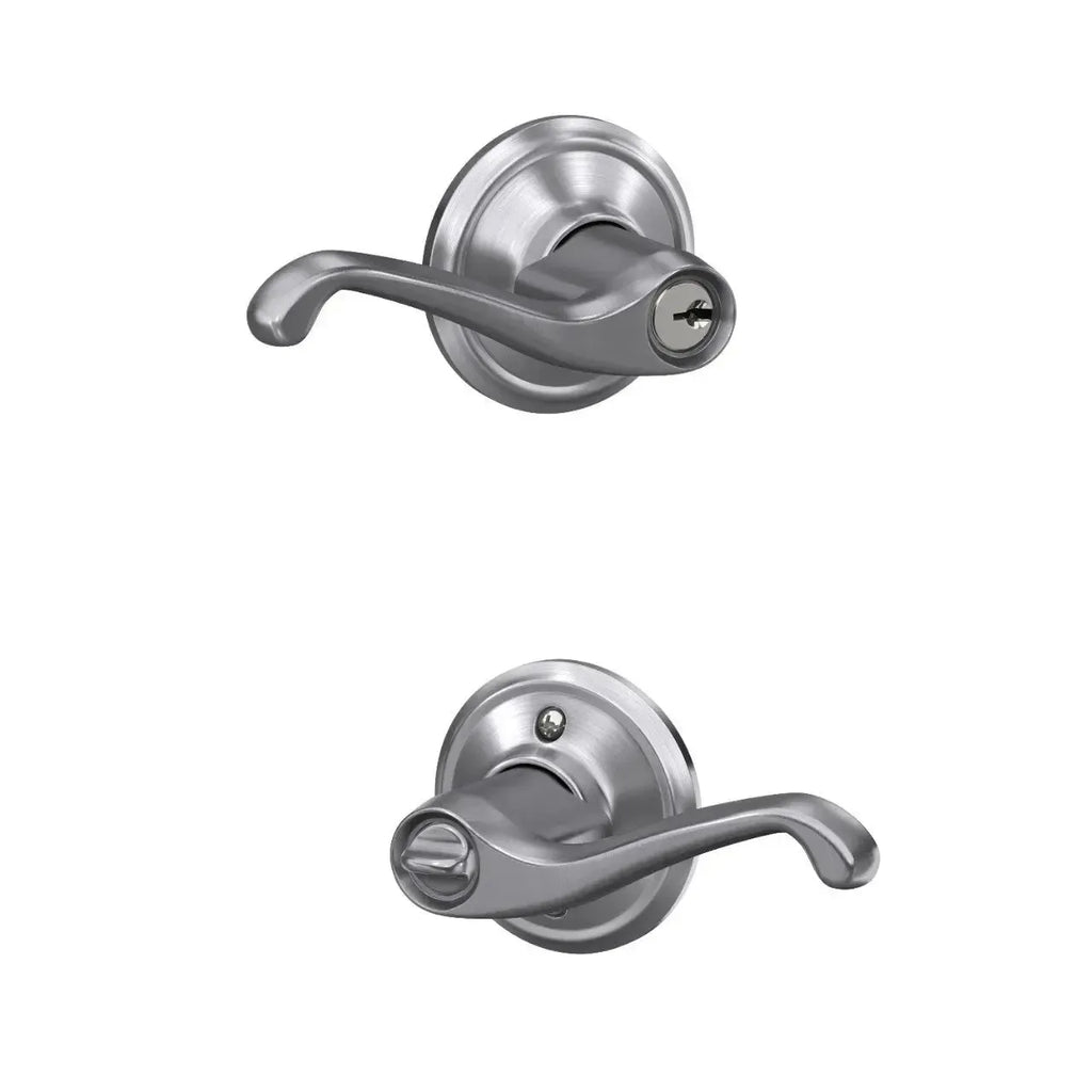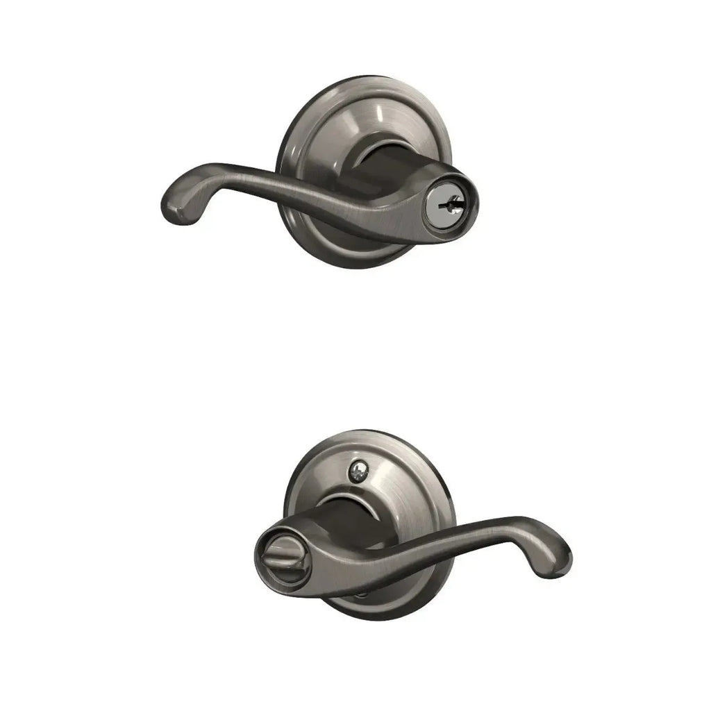 The Schlage Flair Lever brings graceful curves and traditional charm to interior doors throughout the home. Its gently arched design offers comfortable grip and timeless appeal that works across various décor styles. Engineered with Schlage's reputation for reliability, this lever handles daily use in busy households while maintaining smooth operation year after year.