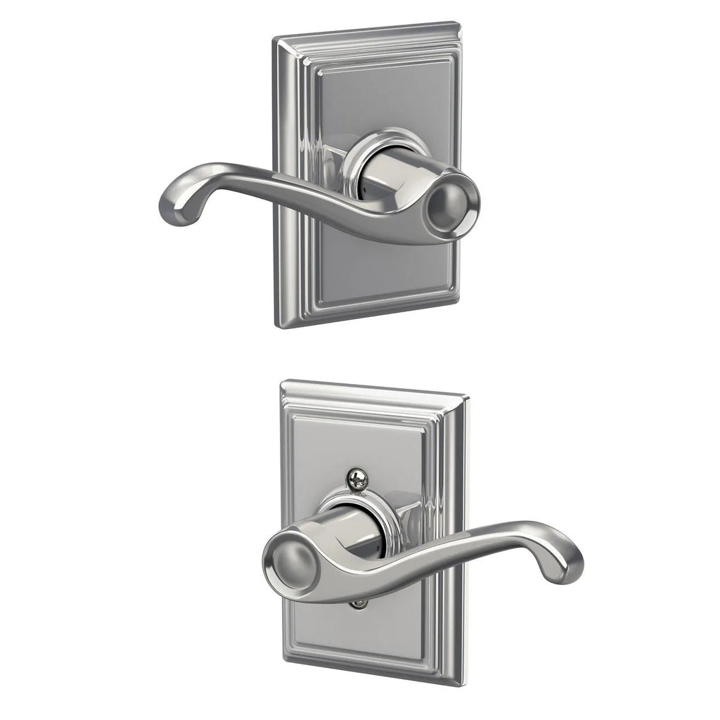 Bring traditional sophistication to your doors with the Schlage Flair Lever. Featuring the gracefully curved Flair lever paired with a classic rectangular rosette, this design adds a luxurious touch to any interior. Easy to install, the Flair lever is crafted for durability and offered in a variety of rich finishes to match your décor.