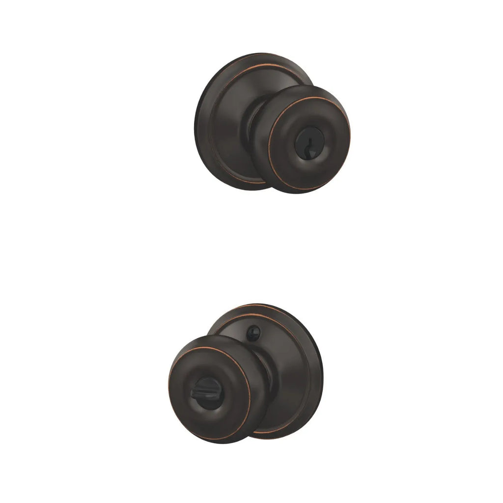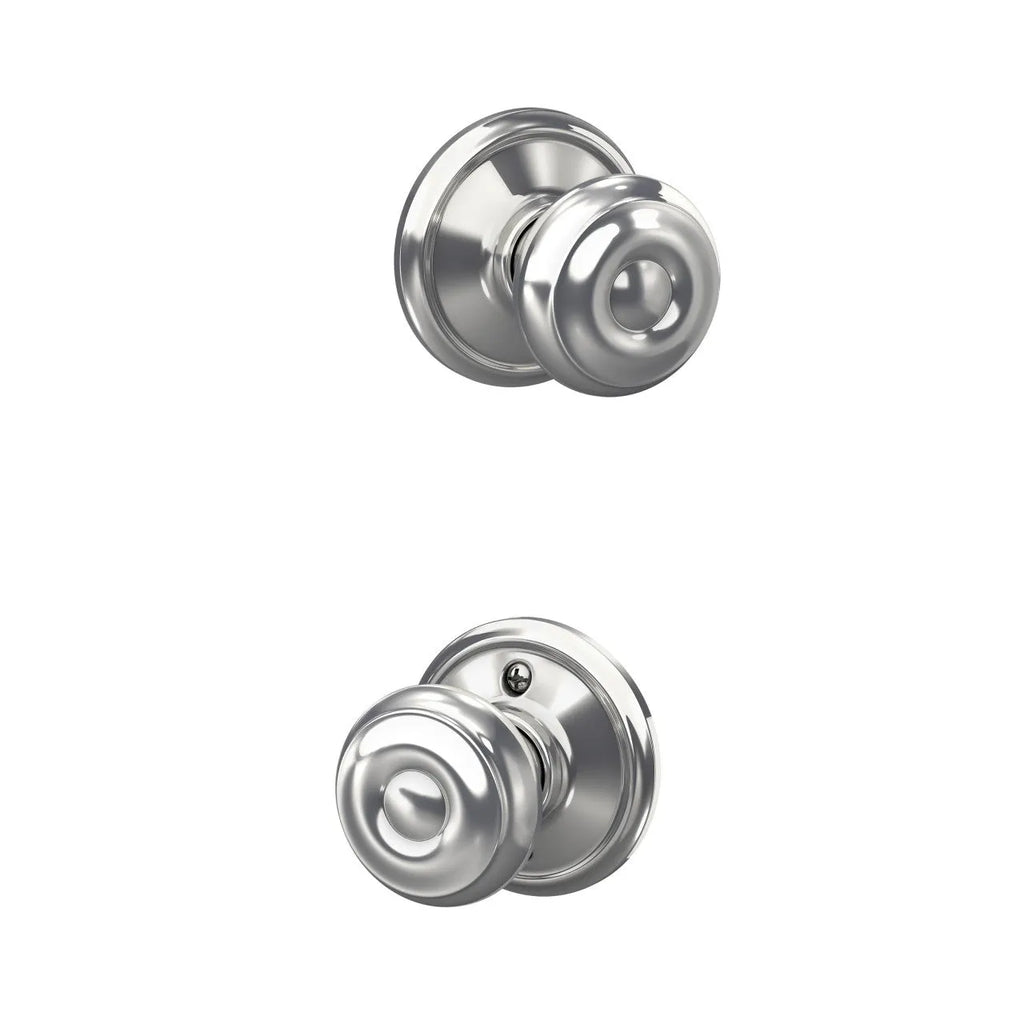 Bring timeless elegance and reliable function to your doors with the Schlage Georgian Knob. Featuring a classic round shape with subtle detailing, this knob adds traditional style that complements a wide range of interiors. Perfect for both residential and light commercial use, the Georgian knob is reversible for left- or right-handed doors and available in multiple functions—privacy, passage, keyed entry, and dummy. Offered in a variety of finishes, it delivers durability, smooth operation, and enduring charm for any room.