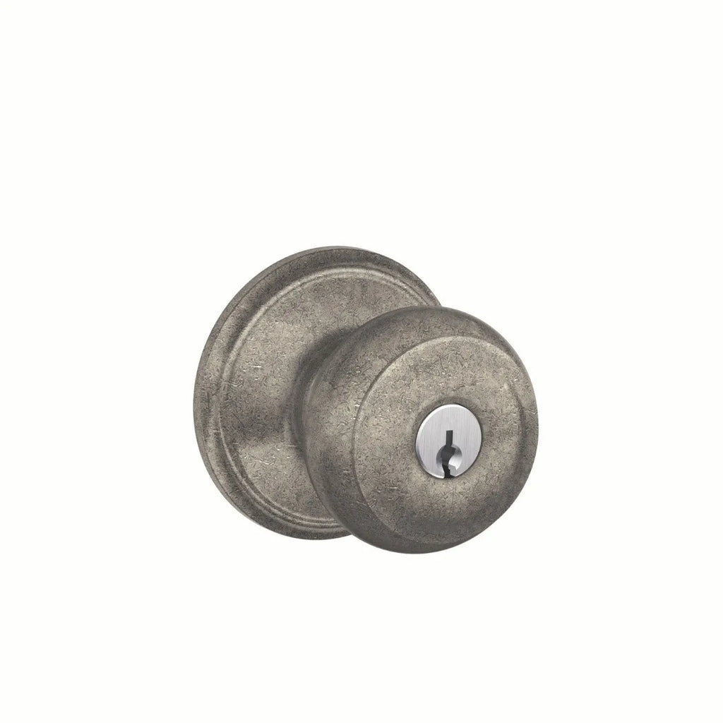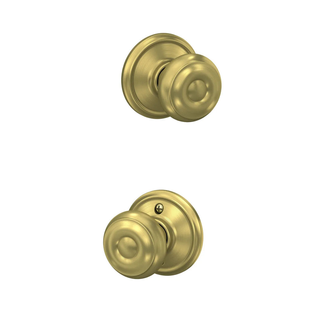 Bring timeless elegance and reliable function to your doors with the Schlage Georgian Knob. Featuring a classic round shape with subtle detailing, this knob adds traditional style that complements a wide range of interiors. Perfect for both residential and light commercial use, the Georgian knob is reversible for left- or right-handed doors and available in multiple functions—privacy, passage, keyed entry, and dummy. Offered in a variety of finishes, it delivers durability, smooth operation, and enduring charm for any room.