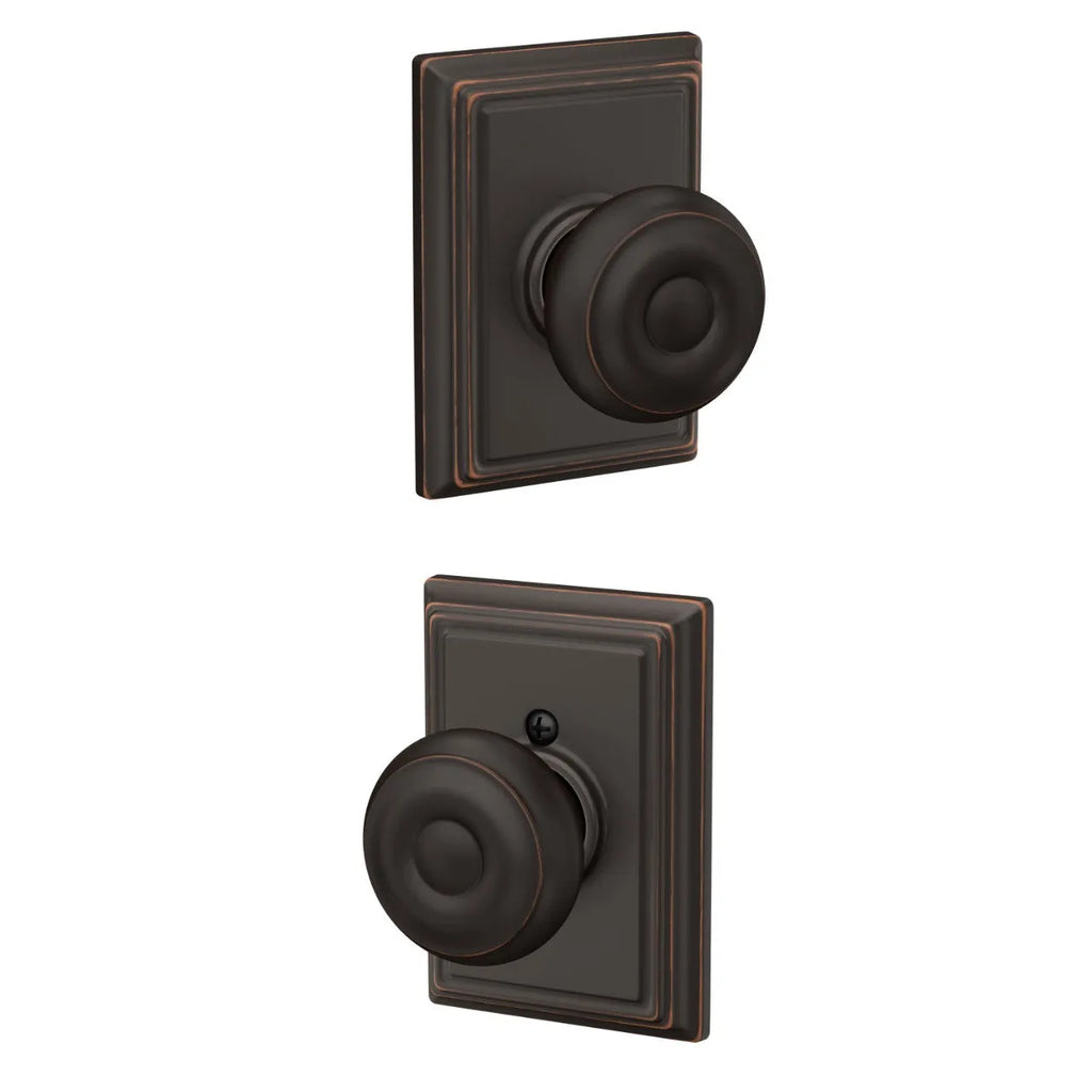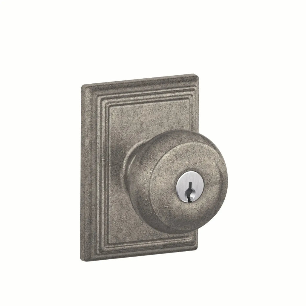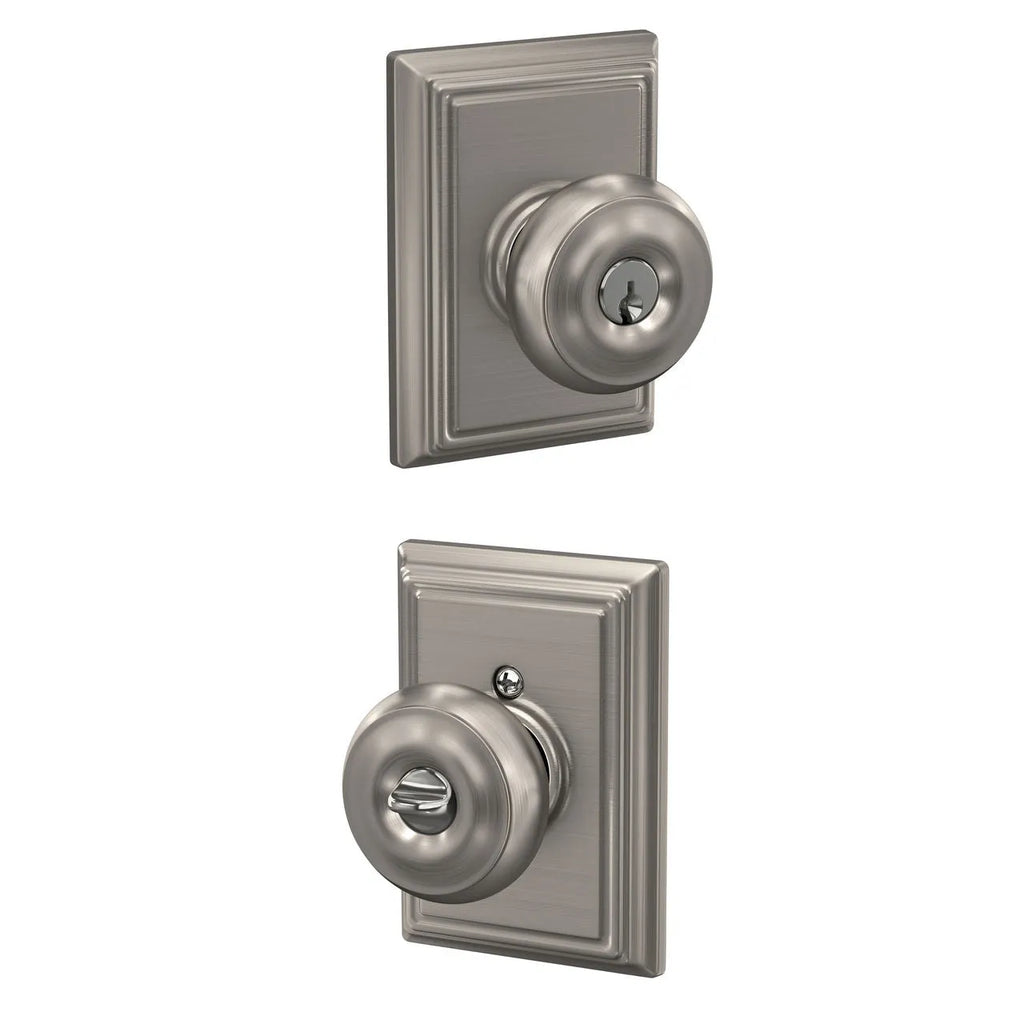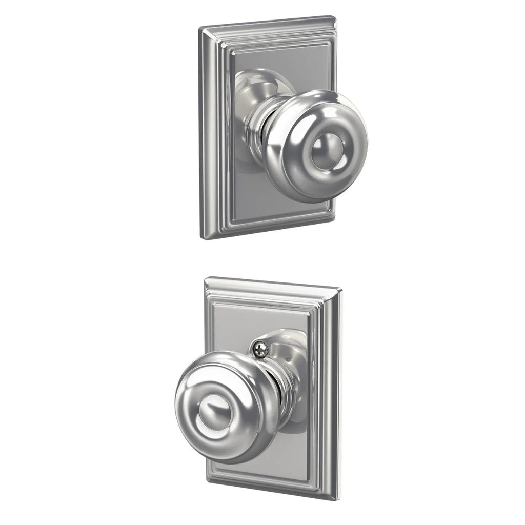Bring timeless elegance and reliable function to your doors with the Schlage Georgian Knob. Featuring a classic round shape paired with a traditional rosette, this knob adds style that complements a wide range of interiors. Perfect for both residential and light commercial use, the Georgian knob is reversible for left- or right-handed doors and available in multiple functions—privacy, passage, keyed entry, and dummy. Offered in a variety of finishes, it delivers durability, smooth operation, and enduring charm for any room.