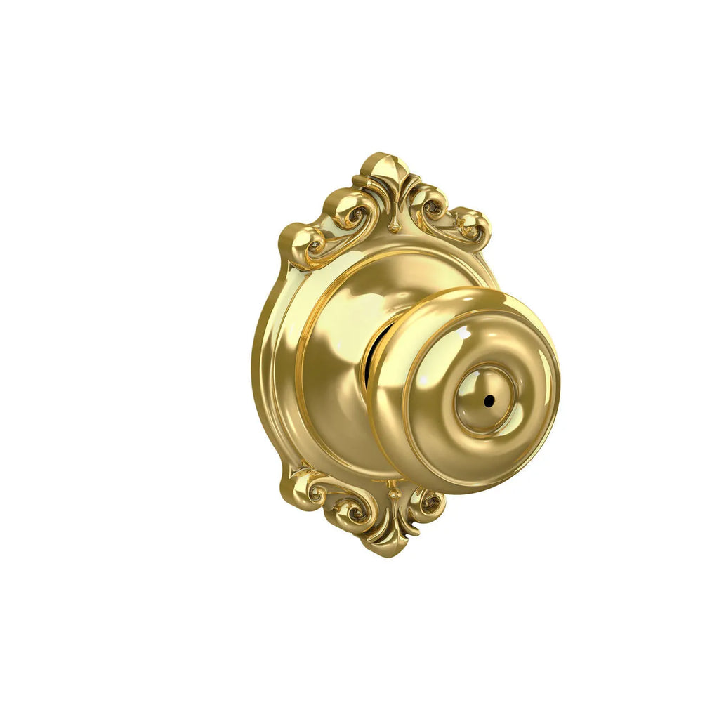 Bring timeless elegance and reliable function to your doors with the Schlage Georgian Knob. Featuring a classic round shape paired with a detailed rosette, this knob adds traditional style that complements a wide range of interiors. Perfect for both residential and light commercial use, the Georgian knob is reversible for left- or right-handed doors and available in multiple functions—privacy, passage, keyed entry, and dummy. Offered in a variety of finishes, it delivers durability, smooth operation, and enduring charm for any room.