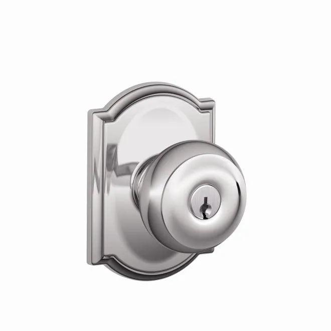 Bring timeless elegance and reliable function to your doors with the Schlage Georgian Knob. Featuring a classic round shape paired with a traditional rosette, this knob adds style that complements a wide range of interiors. Perfect for both residential and light commercial use, the Georgian knob is reversible for left- or right-handed doors and available in multiple functions—privacy, passage, keyed entry, and dummy. Offered in a variety of finishes, it delivers durability, smooth operation, and enduring charm for any room.