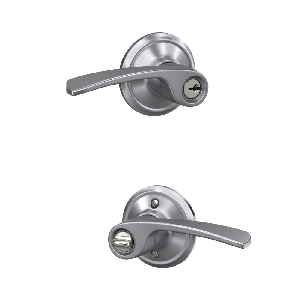 Bring modern simplicity and subtle elegance to your doors with the Schlage Merano Lever. Featuring a graceful curve, this design blends a sleek feel with contemporary style. Perfect for a variety of interiors, it’s available in multiple functions including passage, privacy, keyed entry, and dummy.