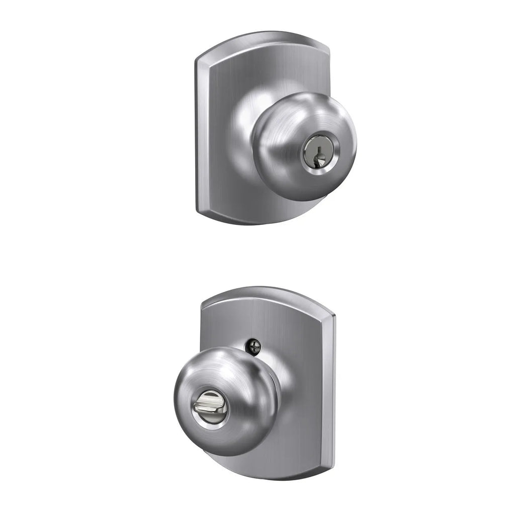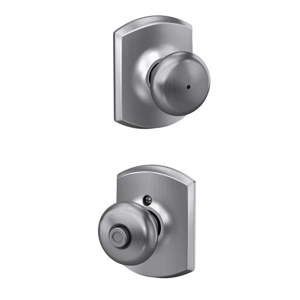 Add classic style and reliable performance to your doors with the Schlage Plymouth Knob. Featuring a simple, round knob paired with a sleek rosette, this knob offers timeless appeal that complements both traditional and transitional interiors. Ideal for bedrooms, bathrooms, hallways, and entry doors, it’s available in multiple functions including passage, privacy, keyed entry, and dummy. Easy to install, the Plymouth knob is built for durability and available in a range of finishes to match your décor.