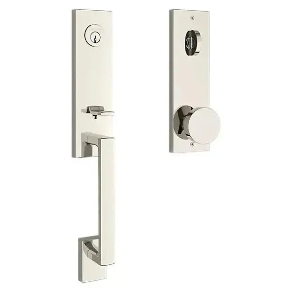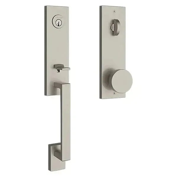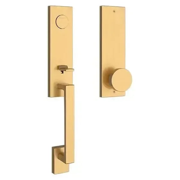 Upgrade your front door with the Baldwin Estate Seattle Handleset. This elegant hardware features a subtly curved grip, a modern square escutcheon, and a sleek interior knob. Crafted from solid forged brass for superior durability, it provides a substantial feel and a sophisticated statement. This handleset is the perfect choice for a stunning entryway.