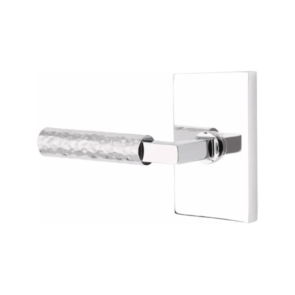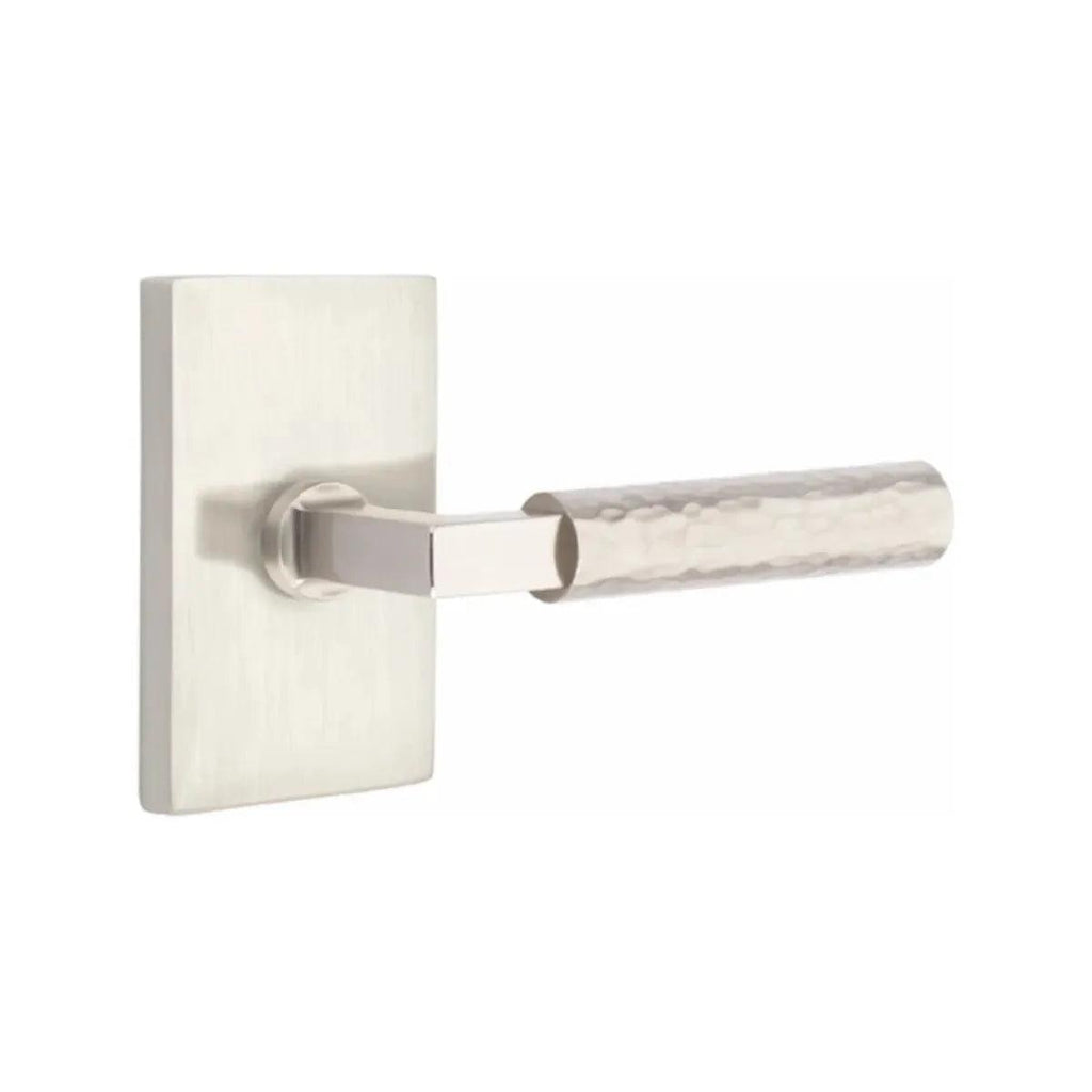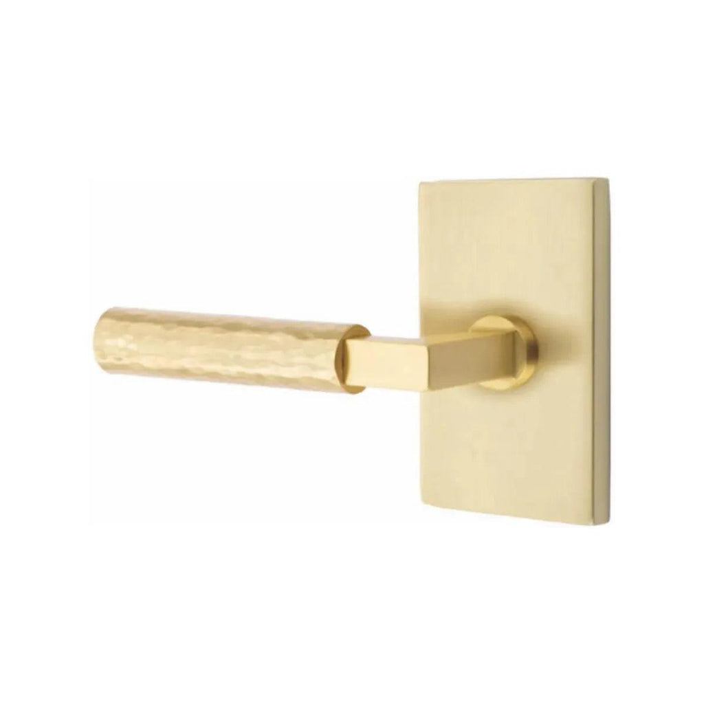 The Hammered Select lever is hand-hammered by the Emtek team, with a dimpled, organic appearance.