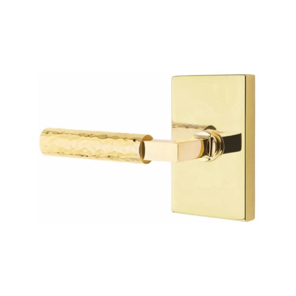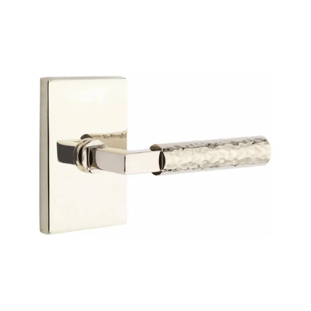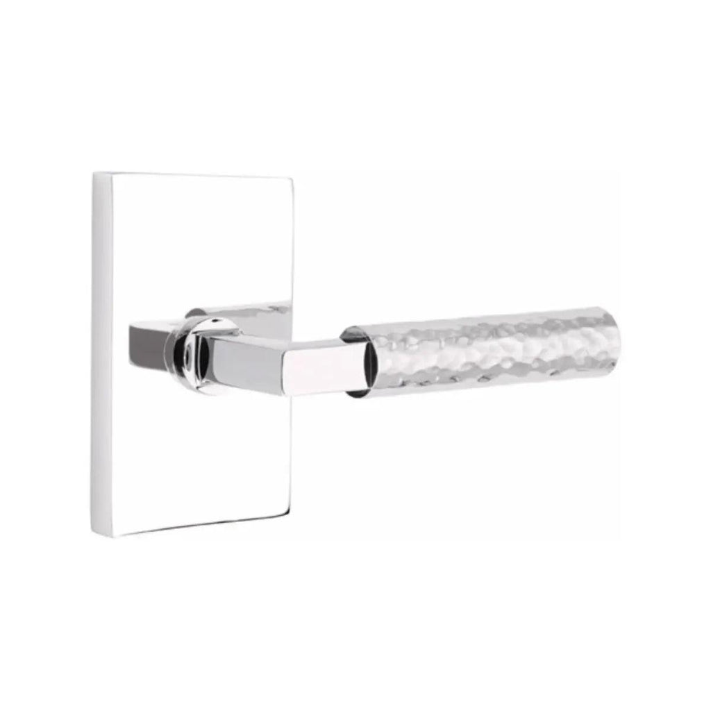 The Hammered Select lever is hand-hammered by the Emtek team, with a dimpled, organic appearance.