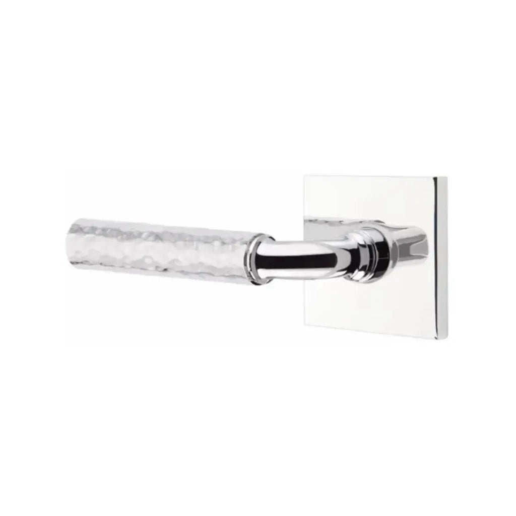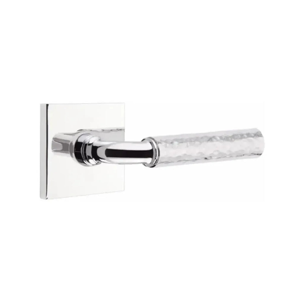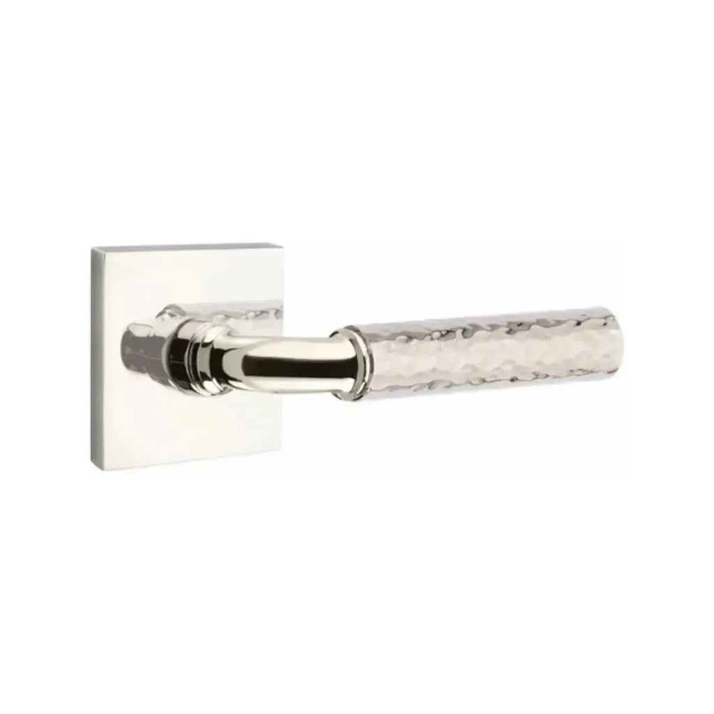 Bold texture and crisp geometry define this modern lever. The Emtek Select R-Bar Hammered Lever with Square Rosette pairs artisan hammering with the sharp lines of a square base for a striking contrast. Durable and stylish, it’s a perfect choice for doors that call for handcrafted character with contemporary edge.