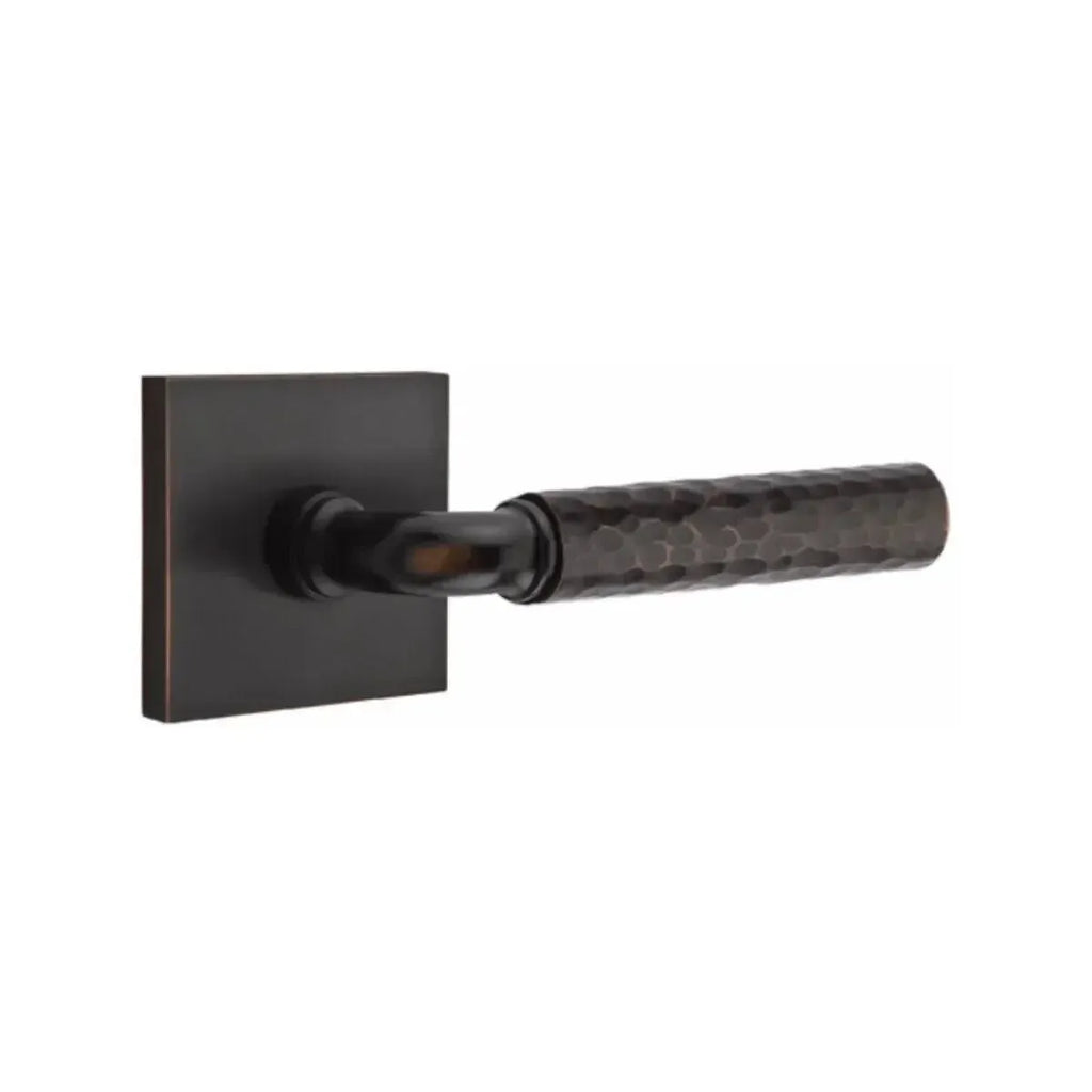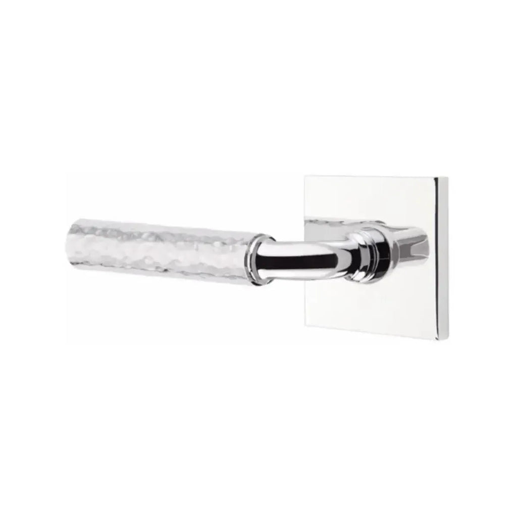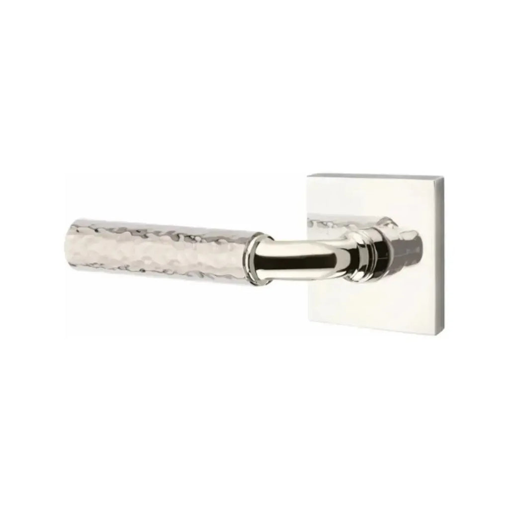 Bold texture and crisp geometry define this modern lever. The Emtek Select R-Bar Hammered Lever with Square Rosette pairs artisan hammering with the sharp lines of a square base for a striking contrast. Durable and stylish, it’s a perfect choice for doors that call for handcrafted character with contemporary edge.