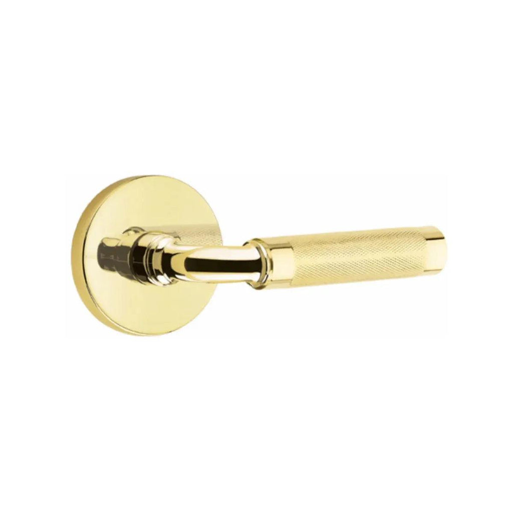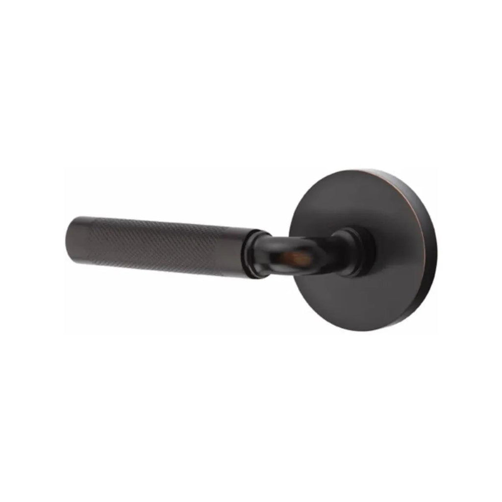 Industrial texture and smooth curves create a lever with striking contrast. The Emtek Select R-Bar Knurled Lever with Disk Rosette pairs a bold knurled grip with the clean, rounded form of a circular base. Built for durability, it offers long-lasting strength with refined style. A perfect choice for homeowners and designers who want hardware that blends modern edge with timeless appeal.
