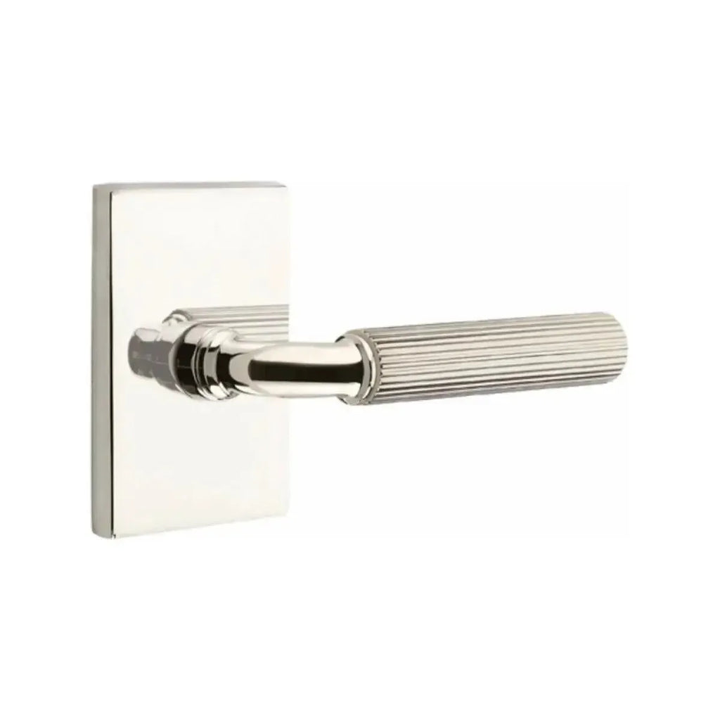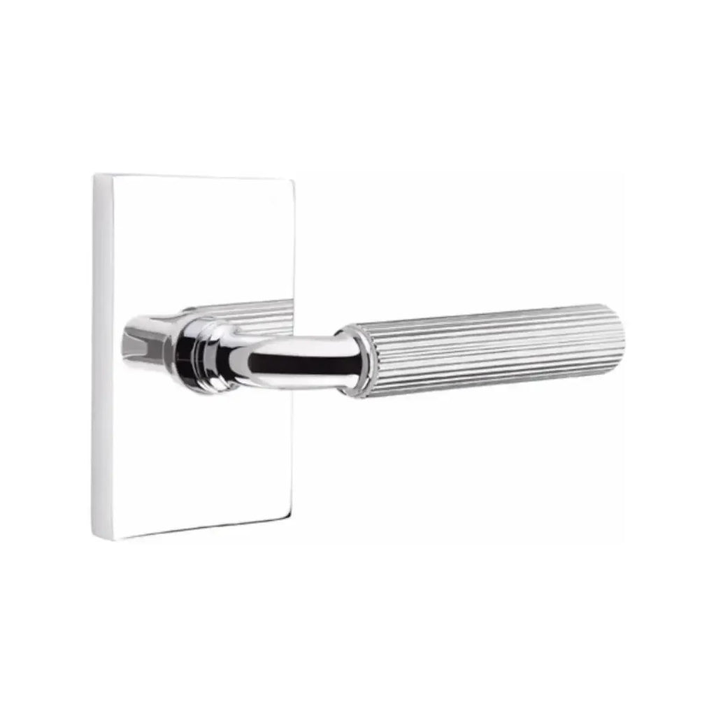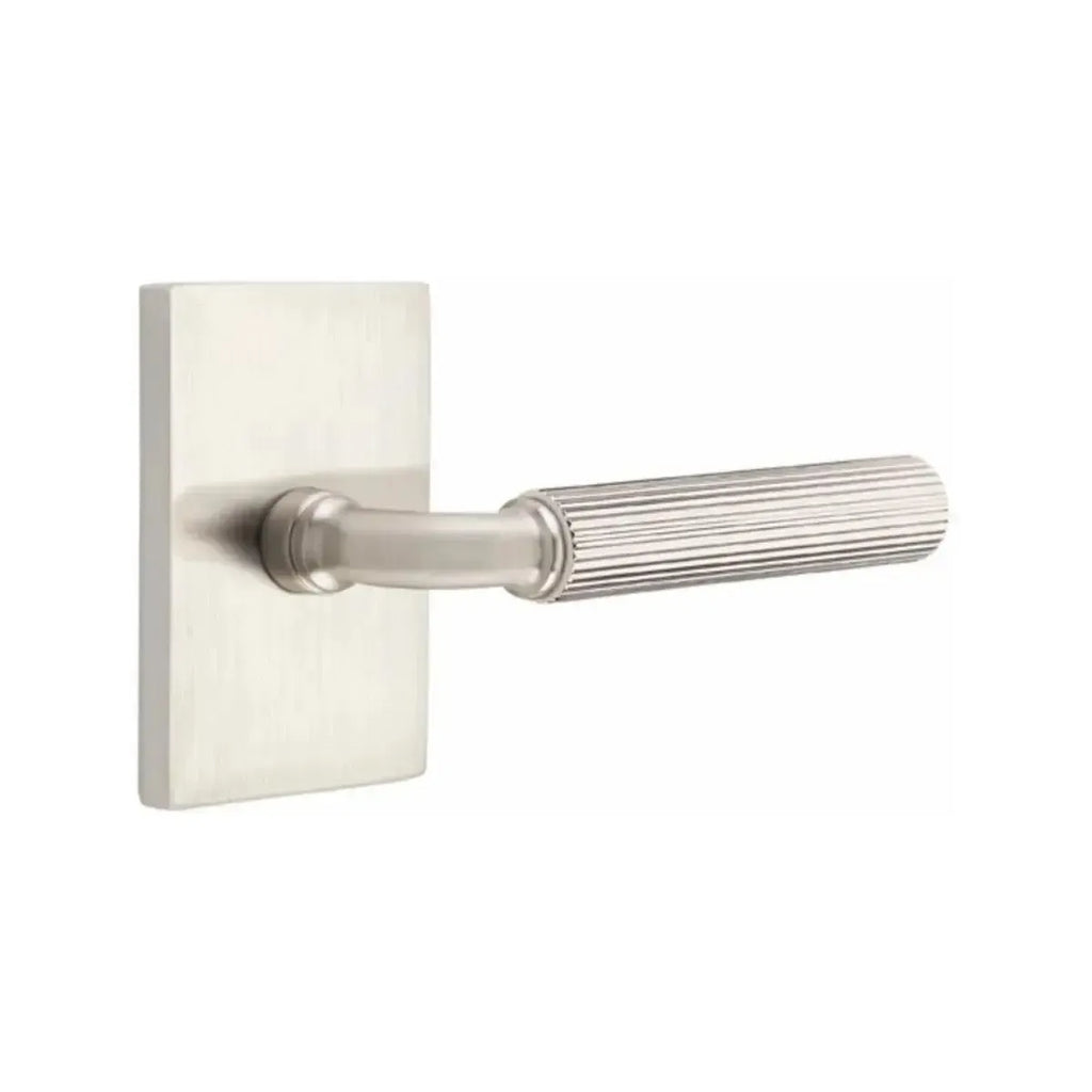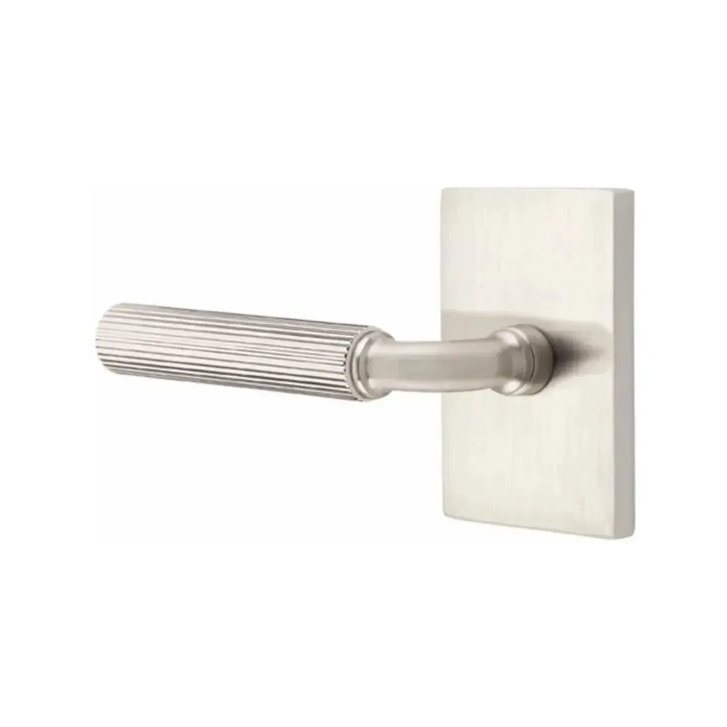Industrial texture meets sharp geometry in this bold lever design. The Emtek Select R-Bar Straight Knurled Lever with Modern Rectangular Rosette features a precision knurled grip paired with the clean lines of a rectangular base. Built for long-lasting performance, it offers both strength and refined style. A perfect choice for homeowners and designers looking to add a contemporary, architectural edge to their doors.