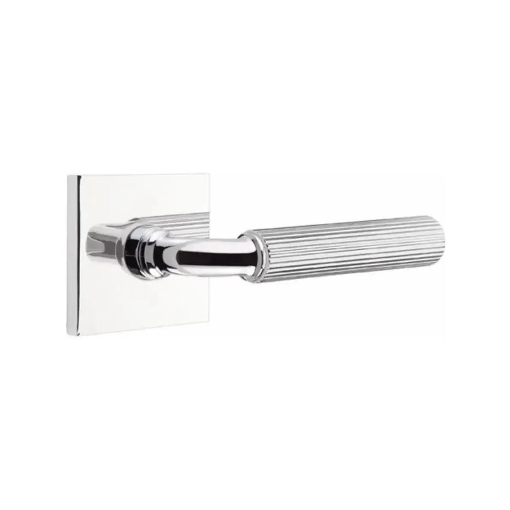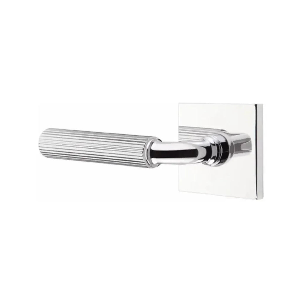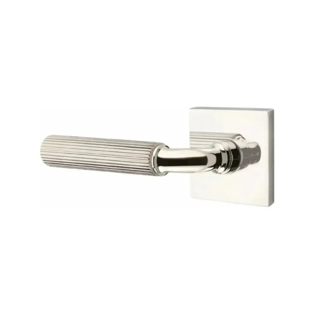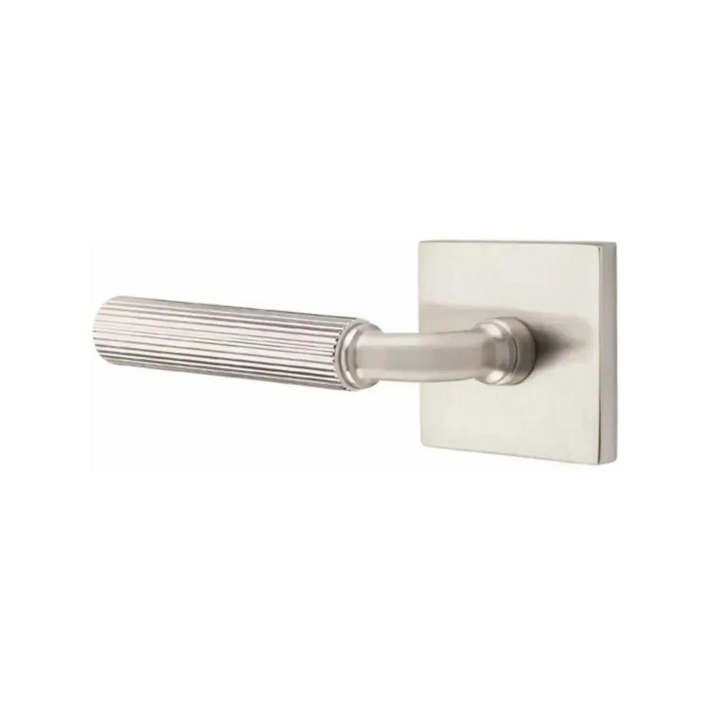 Strong texture and crisp geometry define this modern lever. The Emtek Select R-Bar Straight Knurled Lever with Square Rosette features a precision knurled grip paired with the structured lines of a square base. Built for durability, it delivers long-lasting performance with refined style. An ideal choice for homeowners and designers seeking hardware that blends industrial character with contemporary design.