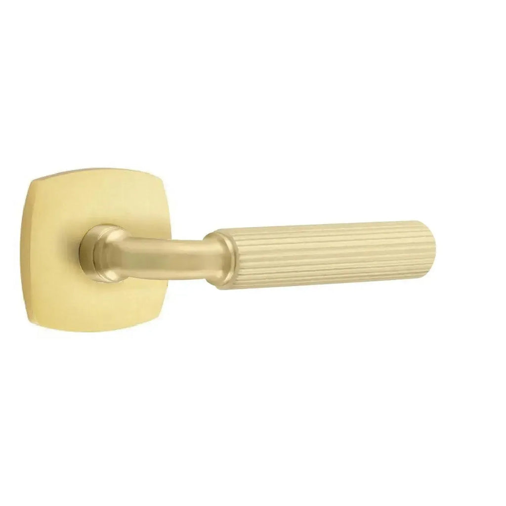 Textured detail and sleek design come together in this modern lever. The Emtek Select R-Bar Straight Knurled Lever with Urban Modern Rosette features a precision knurled grip complemented by the clean lines of a contemporary base. Built for strength and long-term performance, it offers durability with refined style. A perfect choice for homeowners and designers who want hardware with an industrial yet sophisticated look.