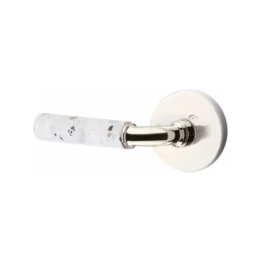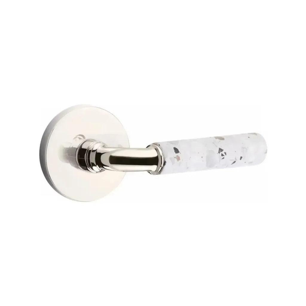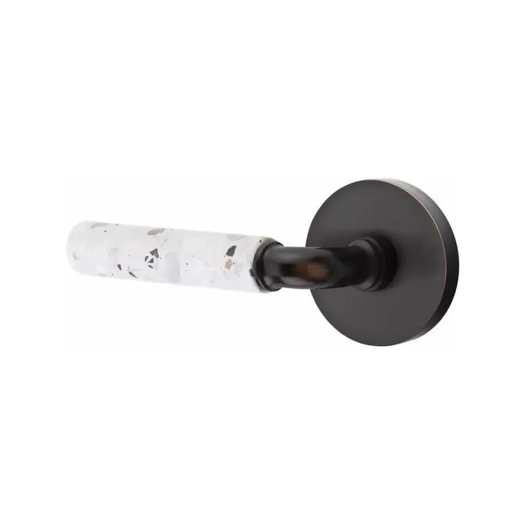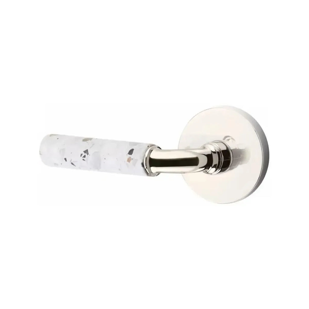 Natural stone texture meets minimalist design in this distinctive lever. The Emtek Select R-Bar Terrazzo Lever with Disk Rosette combines the unique character of terrazzo with the smooth curves of a circular base. Built for strength and long-lasting performance, it delivers both durability and refined style. A perfect choice for homeowners and designers who want hardware that balances modern simplicity with organic elegance.