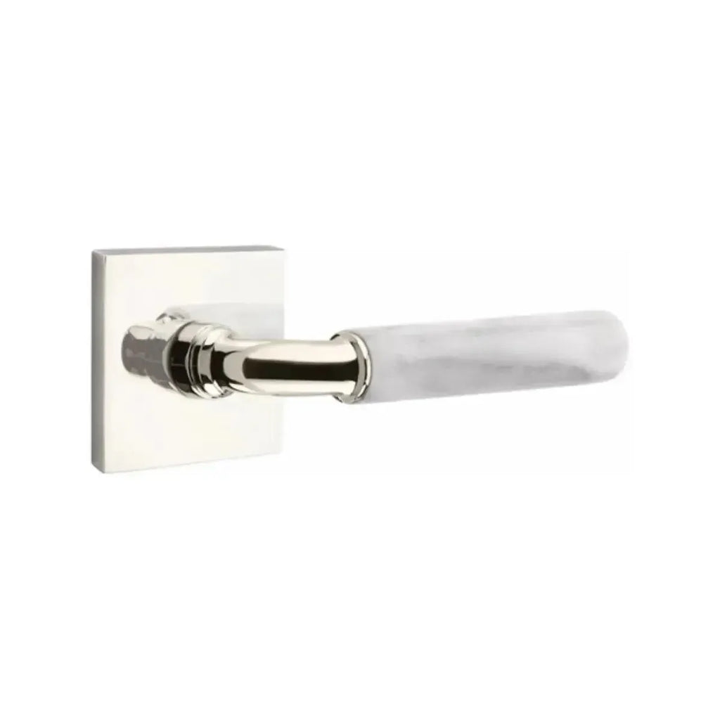 Crisp geometry meets natural luxury in this refined lever. The Emtek Select R-Bar White Marble Lever with Square Rosette pairs the timeless beauty of marble with the structured form of a square base. Durable and stylish, it’s a perfect option for homeowners and designers who want hardware that feels both modern and classic.