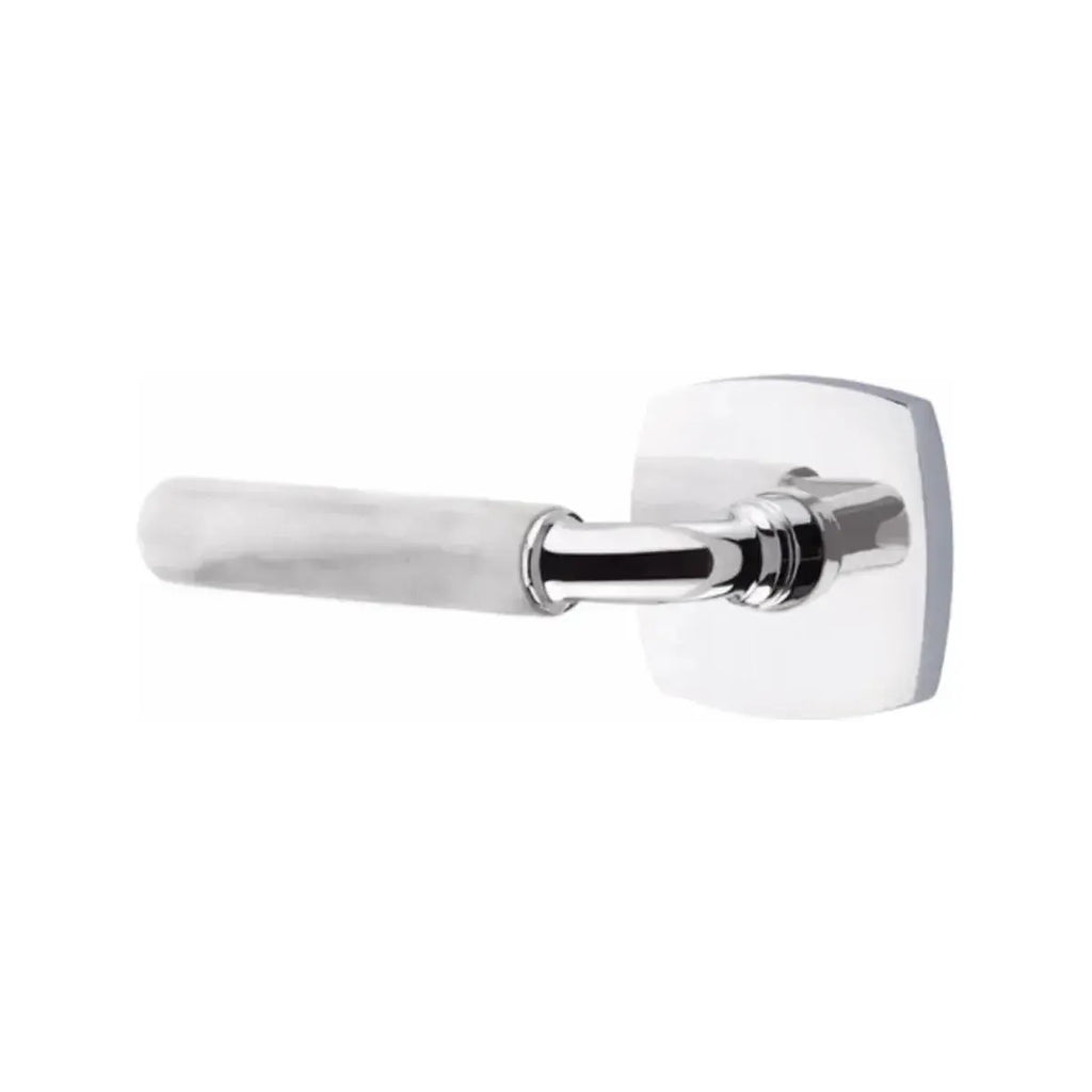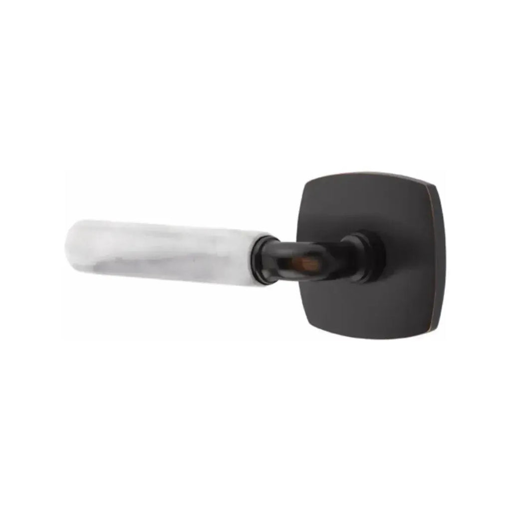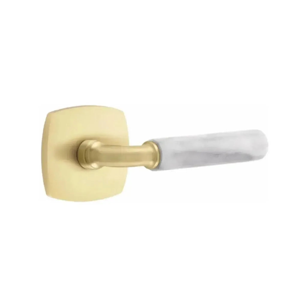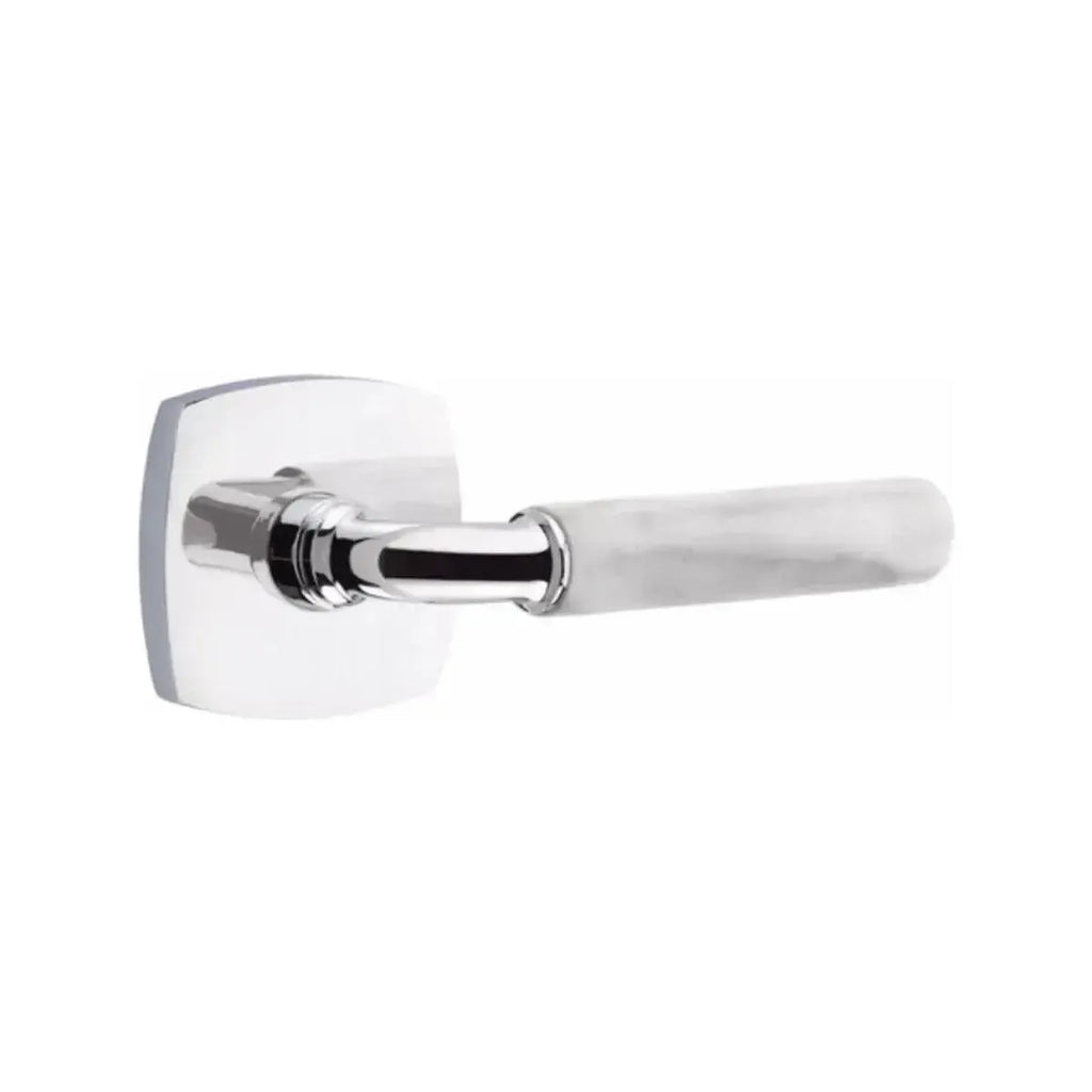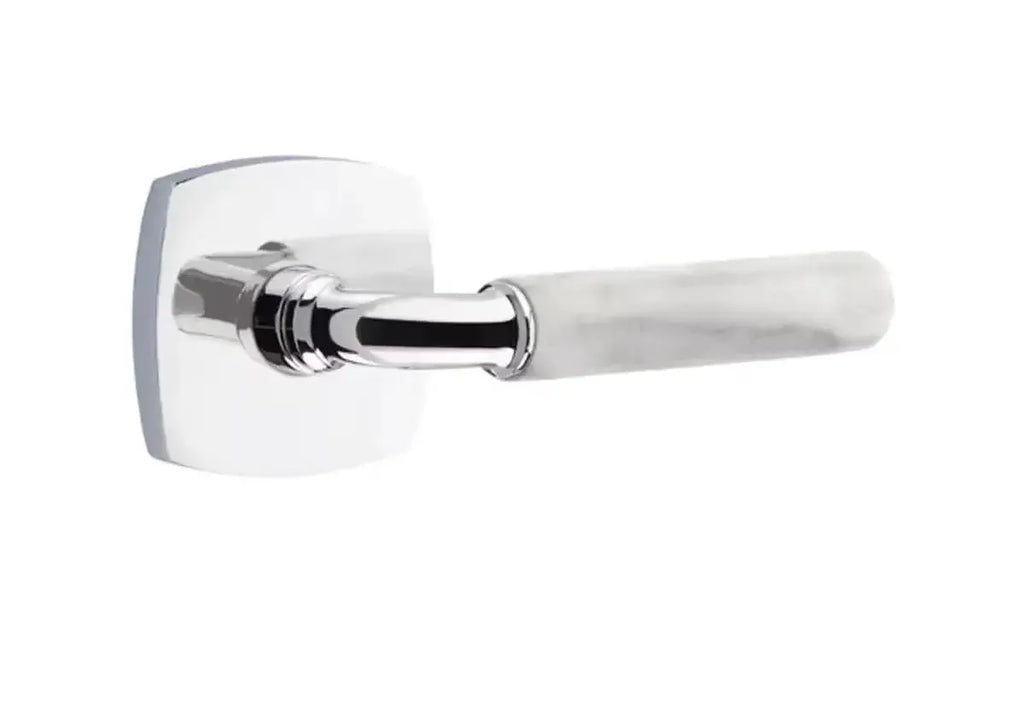 Refined materials and sleek lines give this lever a sophisticated edge. The Emtek Select R-Bar White Marble Lever with Urban Modern Rosette combines the timeless elegance of marble with the clean geometry of a modern base. Built for long-lasting performance, it delivers both strength and style. An ideal choice for homeowners and designers seeking hardware that blends natural beauty with contemporary design.