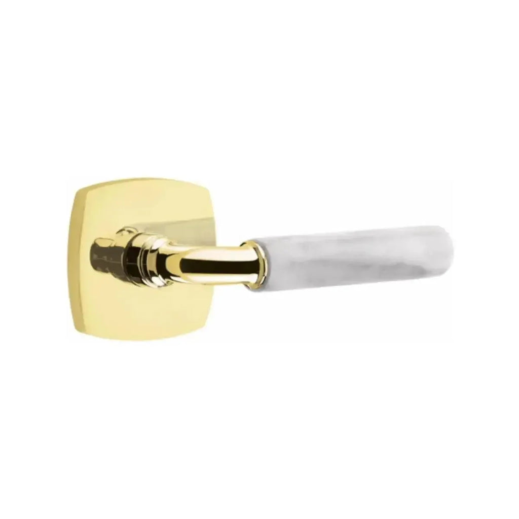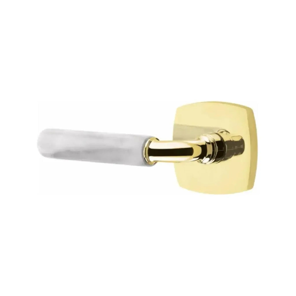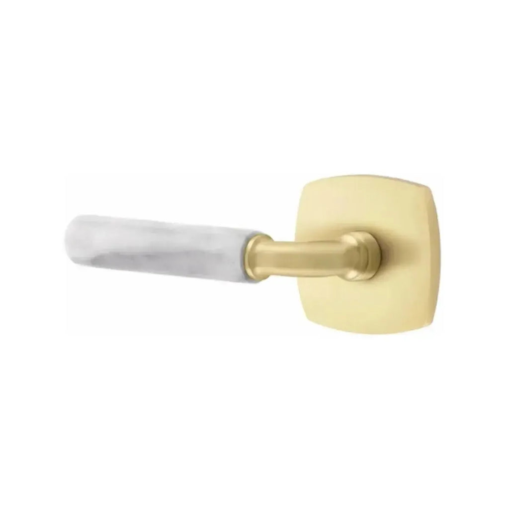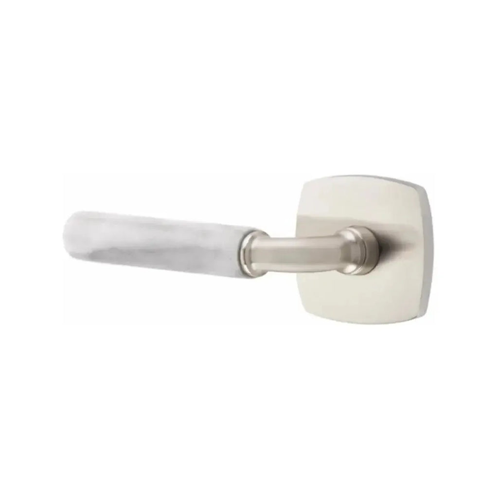 Refined materials and sleek lines give this lever a sophisticated edge. The Emtek Select R-Bar White Marble Lever with Urban Modern Rosette combines the timeless elegance of marble with the clean geometry of a modern base. Built for long-lasting performance, it delivers both strength and style. An ideal choice for homeowners and designers seeking hardware that blends natural beauty with contemporary design.