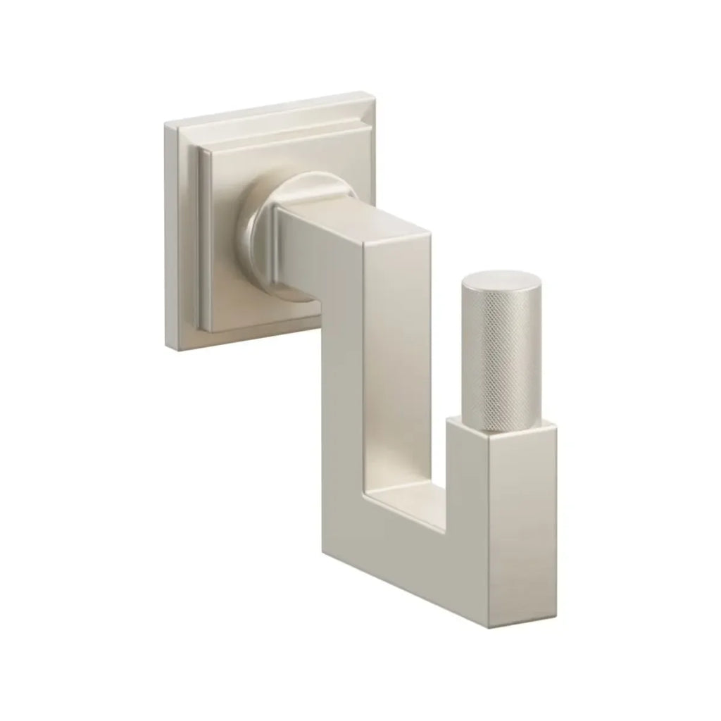 The Emtek Select Square Stem with Knurled Tip U Hook with Step Square Rosette combines bold detailing with practical function. Its square stem and textured knurled tips give a striking look, while the stepped square rosette adds architectural depth. Durable and versatile, this U hook is perfect for hanging robes, towels, or accessories with modern style.