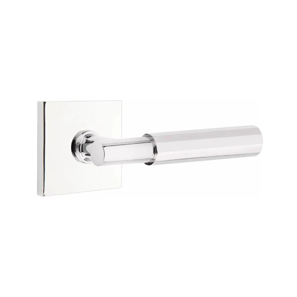 Striking angles and bold design give this lever a modern architectural feel. The Emtek Select T-Bar Faceted Lever with Square Rosette pairs a faceted grip with the clean geometry of a square base. Built for strength and durability, it offers both reliable performance and refined style. A great choice for homeowners and designers who want hardware with a contemporary edge.