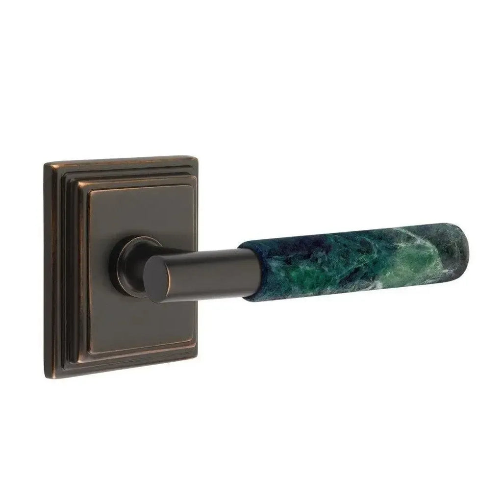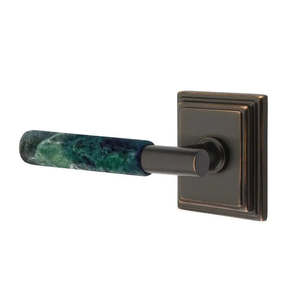 Elegant detail and natural stone make this lever a true statement piece. The Wilshire rosette adds timeless character, while rich green marble brings bold texture and depth. The Emtek Select T-Bar Green Marble Lever with Wilshire Rosette blends traditional elegance with modern craftsmanship. Built for durability, it offers long-lasting strength along with distinctive style. Perfect for homeowners and designers who want hardware that feels both luxurious and unique.
