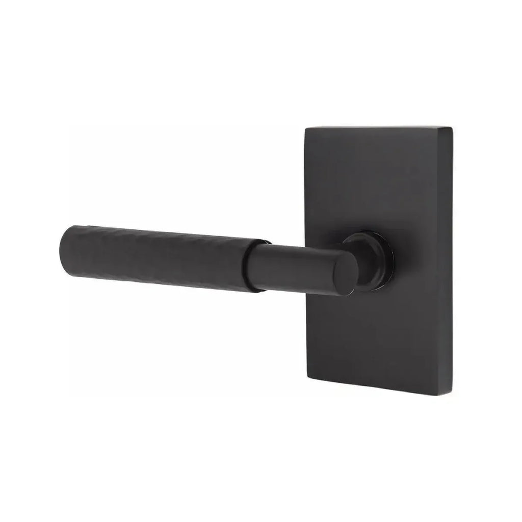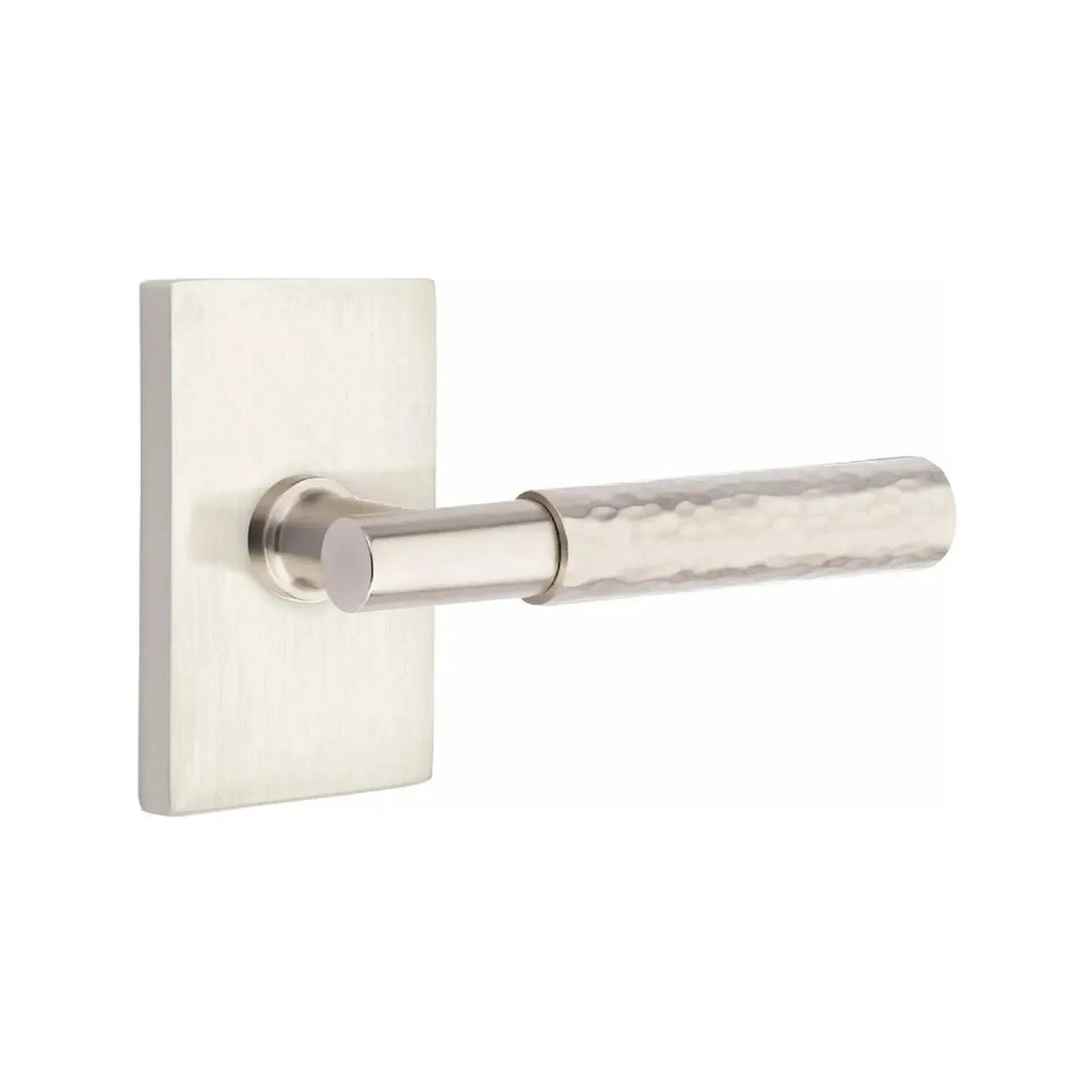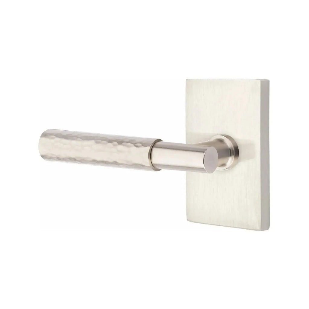 The Hammered Select lever is hand-hammered by the Emtek team, with a dimpled, organic appearance.