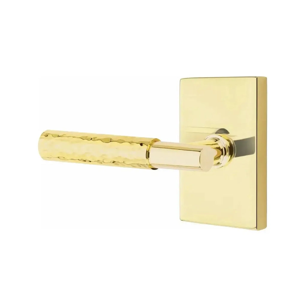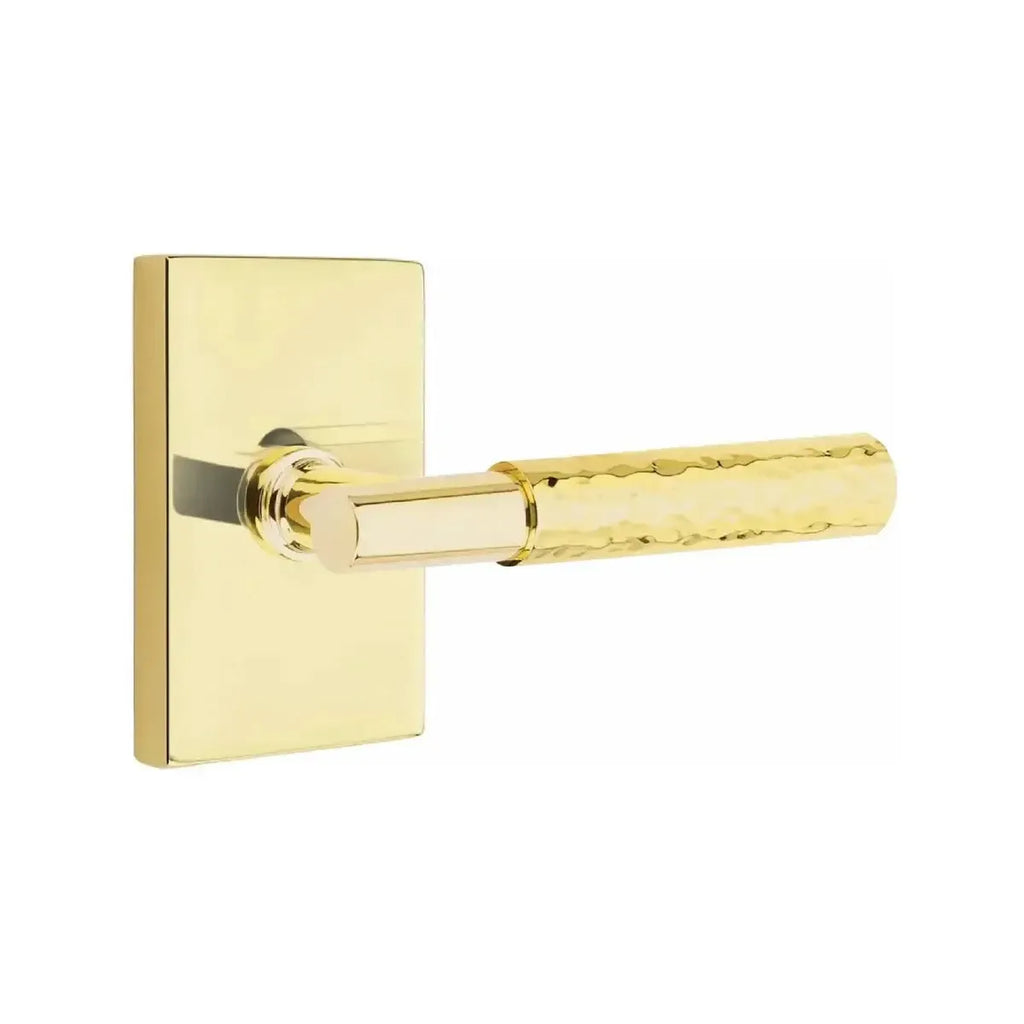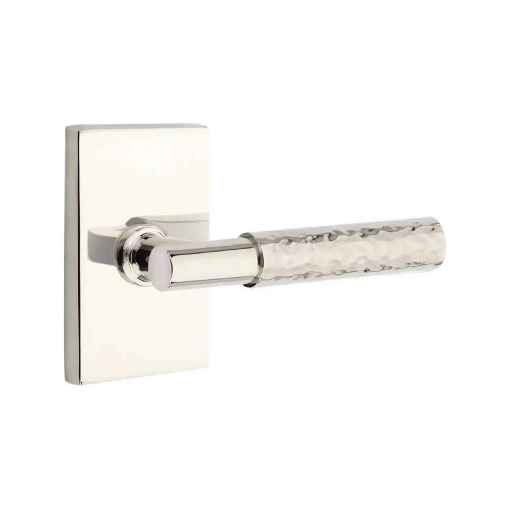 The Hammered Select lever is hand-hammered by the Emtek team, with a dimpled, organic appearance.