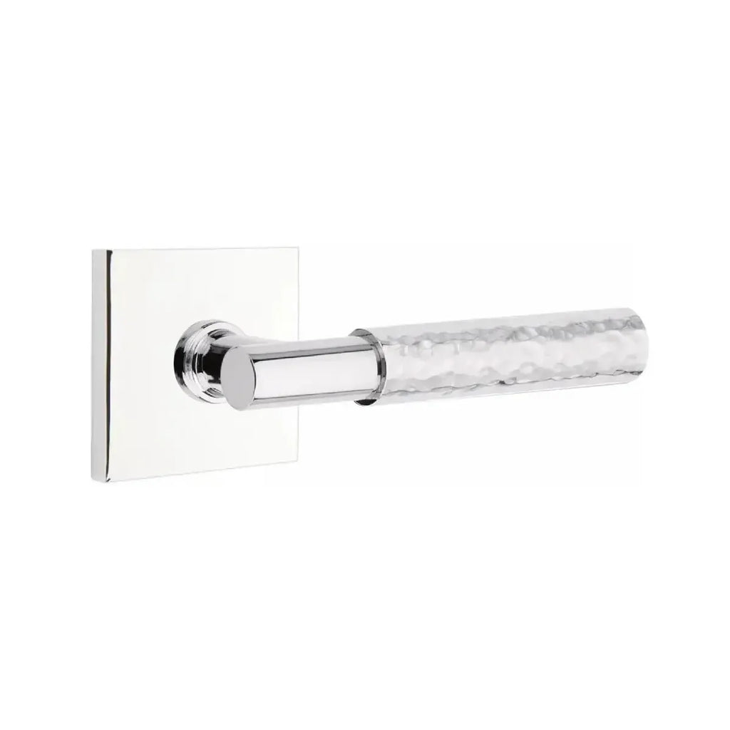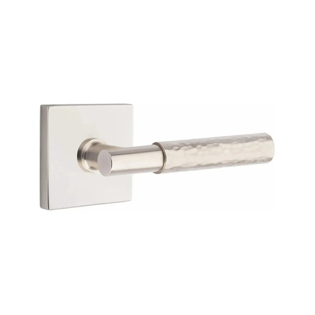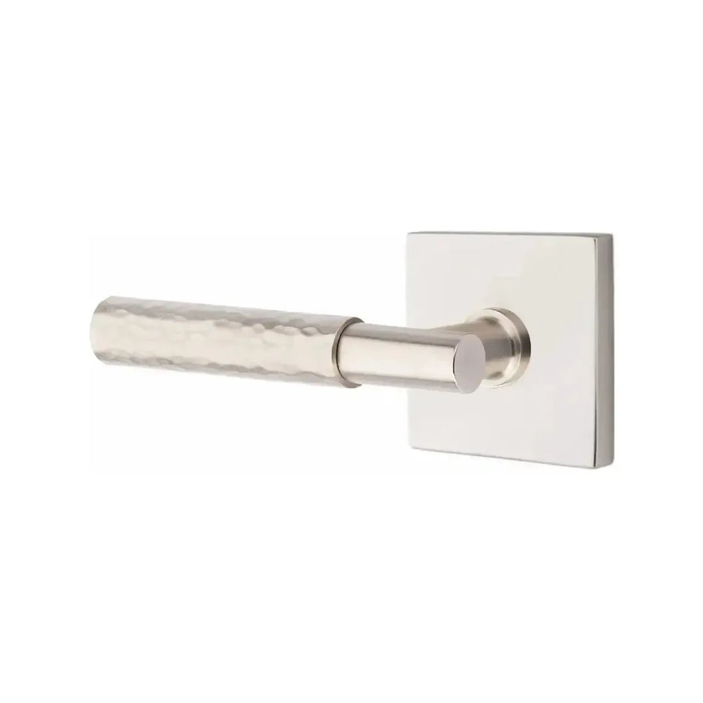 Handcrafted detail meets clean geometry in this distinctive lever design. The Emtek Select T-Bar Hammered Lever with Square Rosette combines an artisan hammered finish with the bold structure of a square base. Built for lasting performance, it delivers both strength and sophisticated style. A perfect choice for homeowners and designers who want hardware that blends unique character with modern appeal.