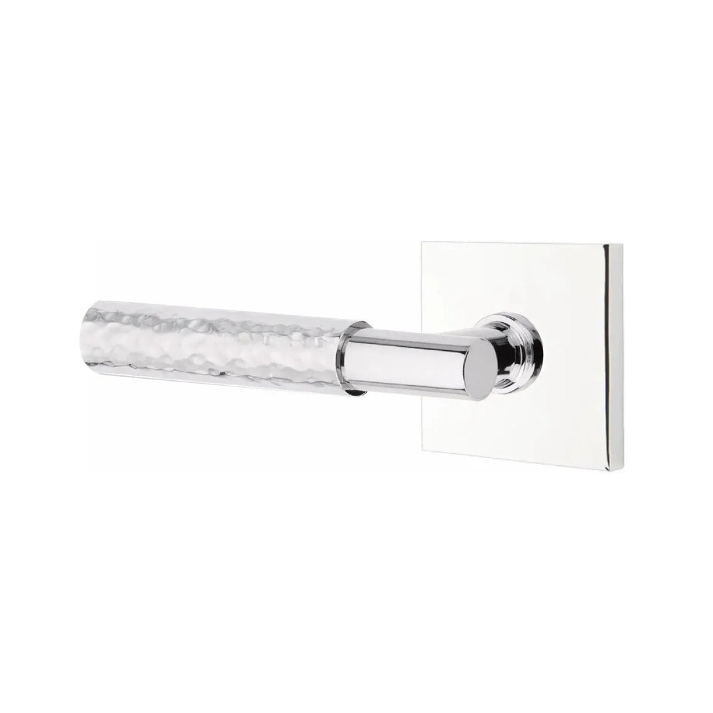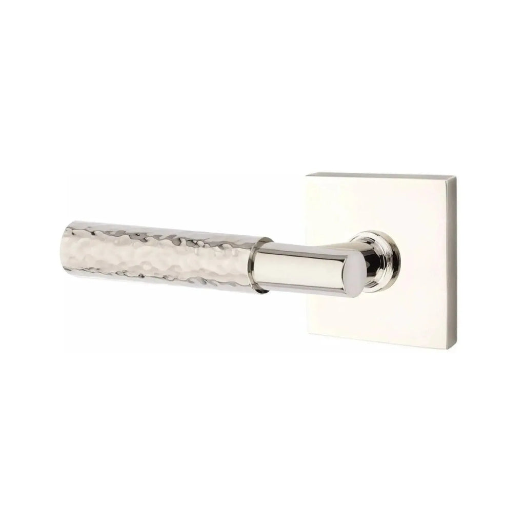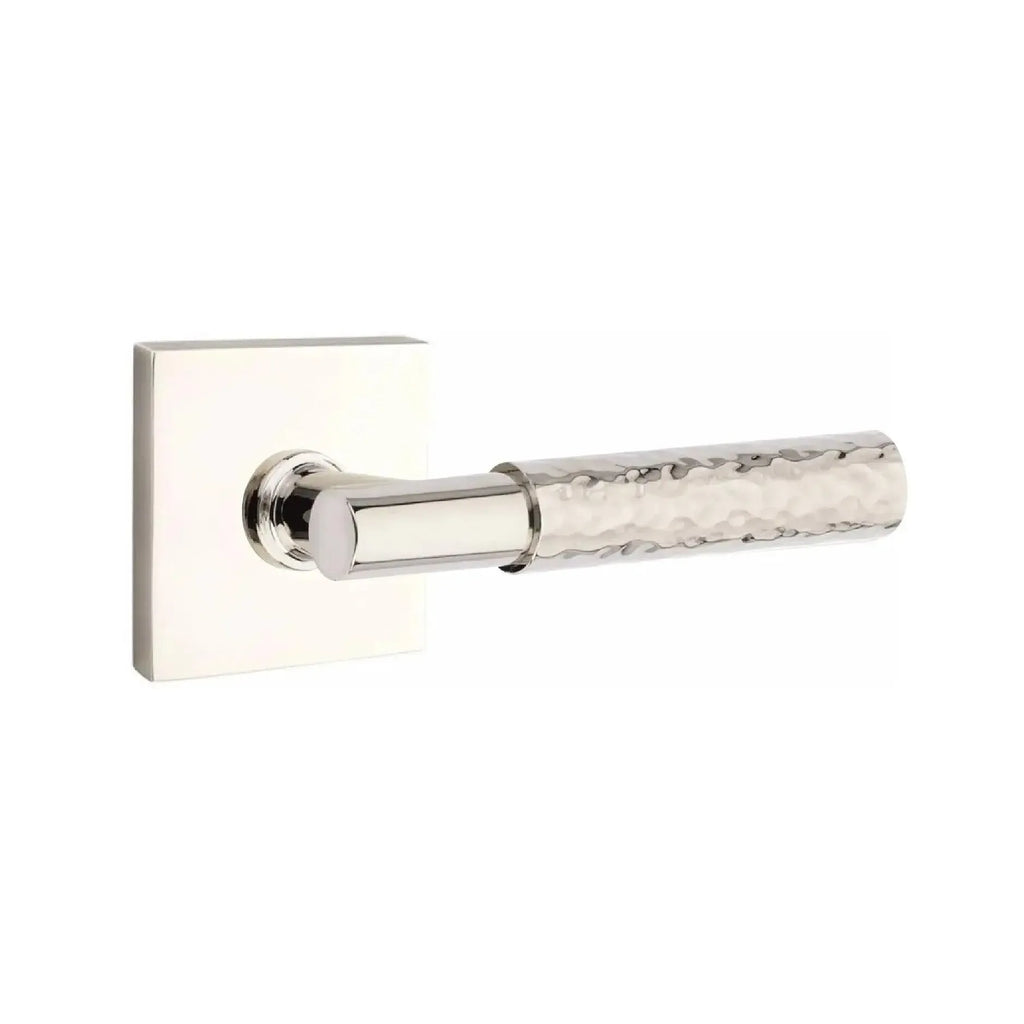 Handcrafted detail meets clean geometry in this distinctive lever design. The Emtek Select T-Bar Hammered Lever with Square Rosette combines an artisan hammered finish with the bold structure of a square base. Built for lasting performance, it delivers both strength and sophisticated style. A perfect choice for homeowners and designers who want hardware that blends unique character with modern appeal.