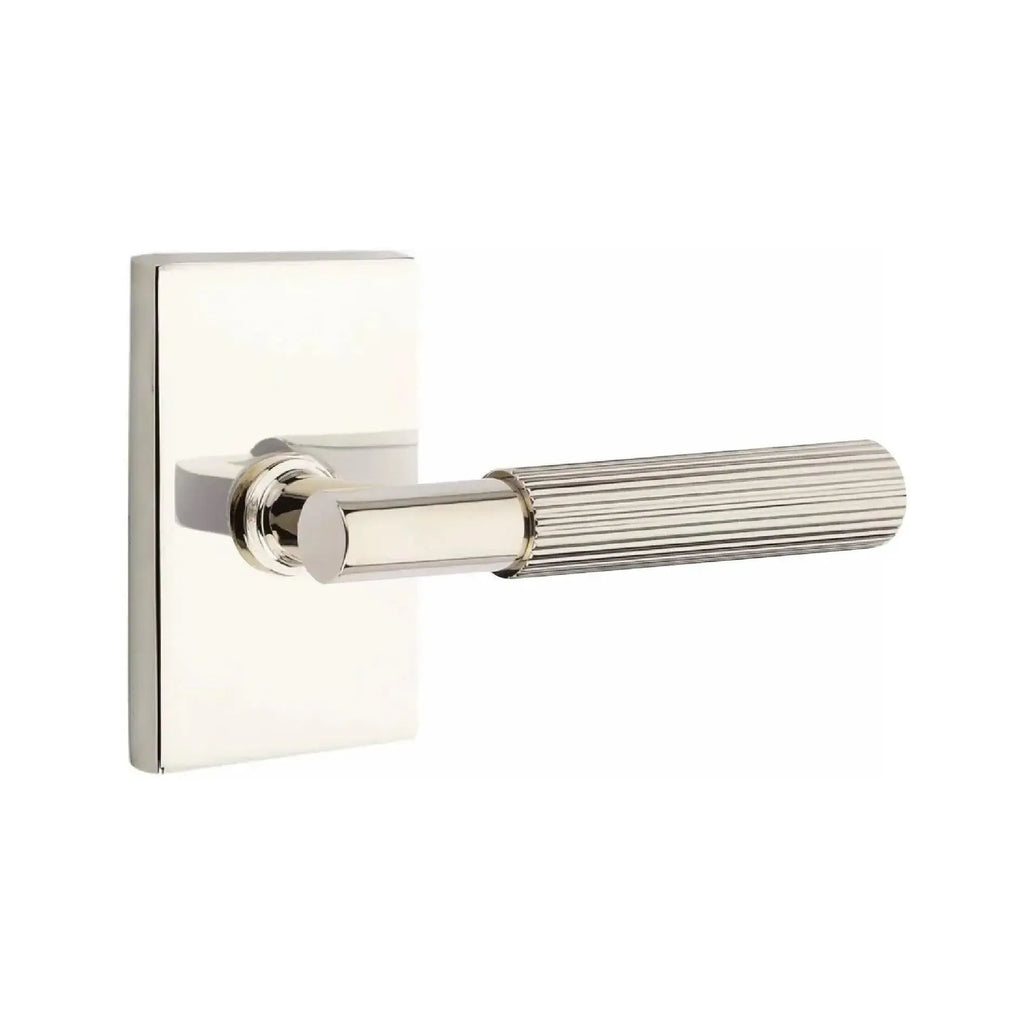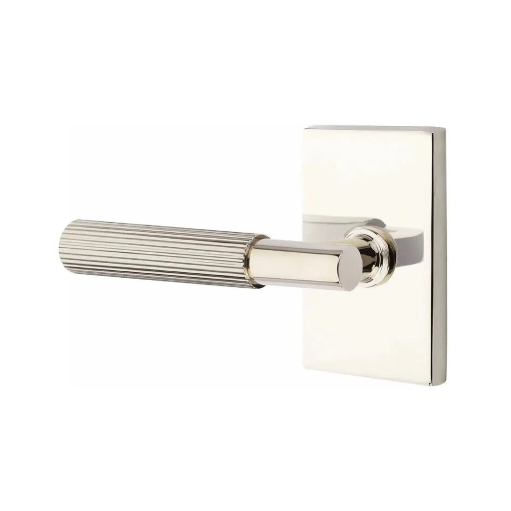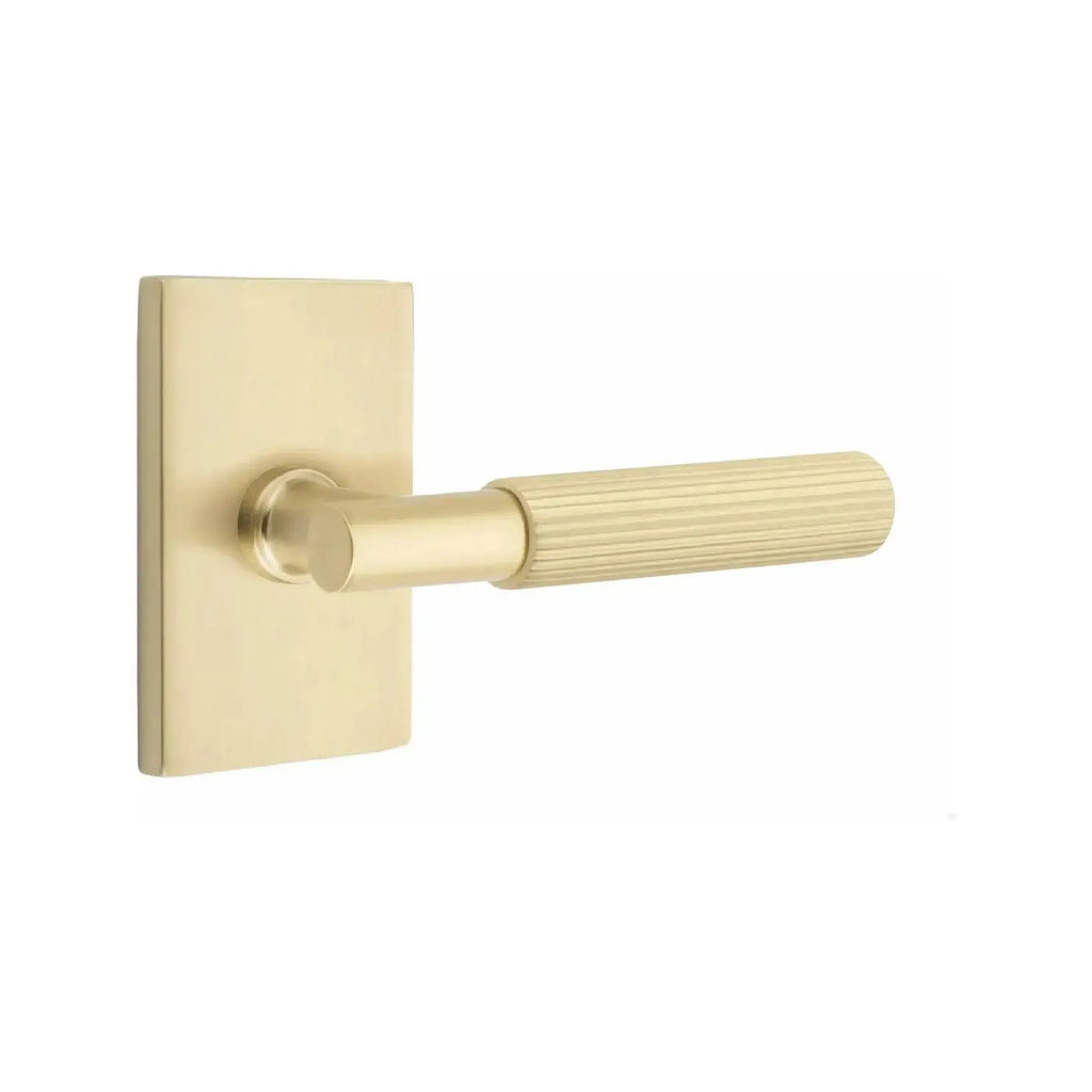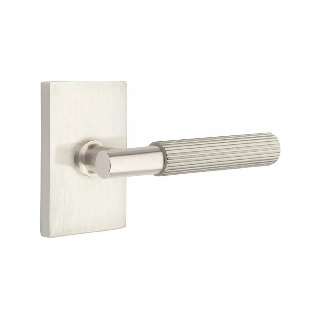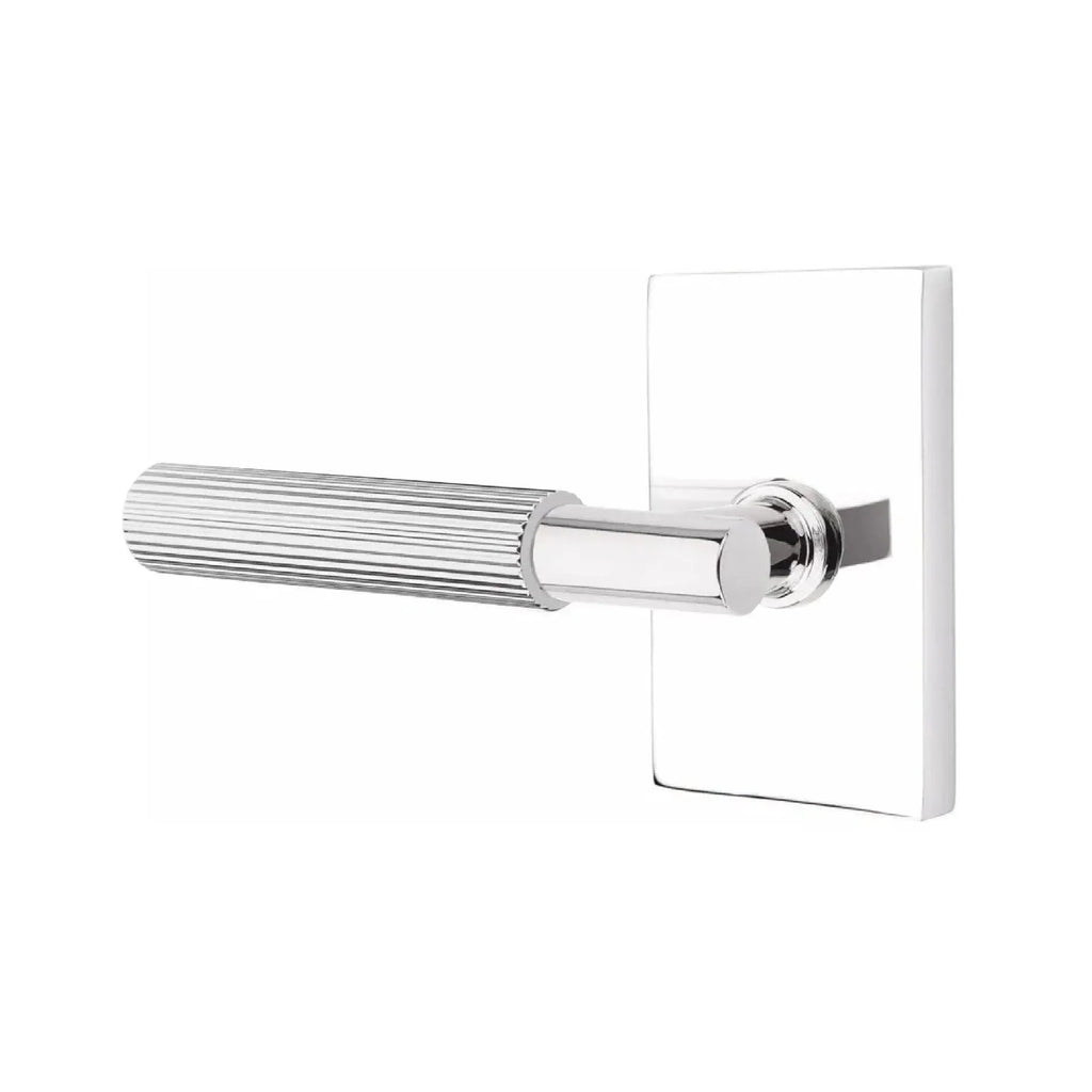 Bold texture and clean geometry come together in a lever that defines modern style. The Emtek Select T-Bar Straight Knurled Lever with Modern Rectangular Rosette combines an industrial-inspired knurled grip with a sharp rectangular base. Built for lasting strength, it offers both performance and refined design. A perfect choice for homeowners and designers looking to add a contemporary edge to any door.