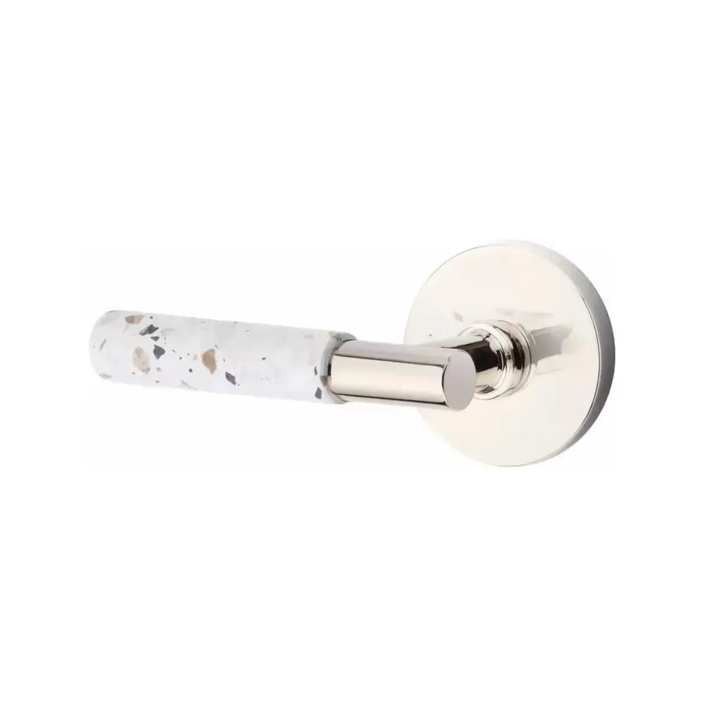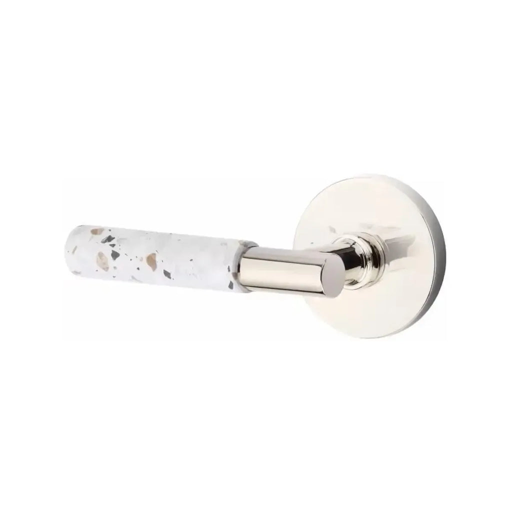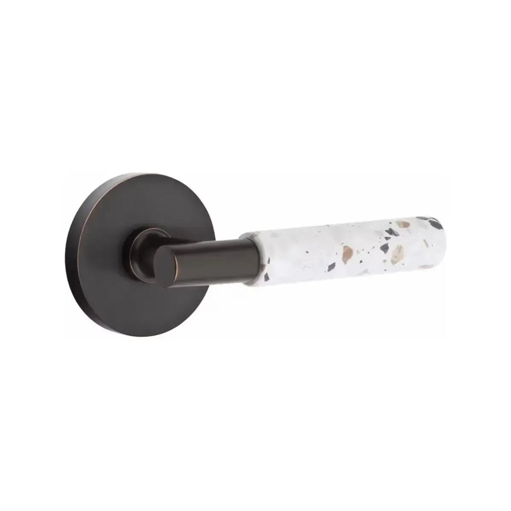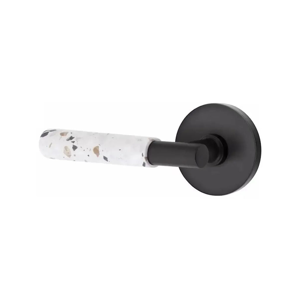 The Emtek Select T-Bar Terrazzo Lever with Disk Rosette combines modern simplicity with the unique character of terrazzo stone. Its circular rosette softens the bold T-Bar design, creating a balanced look that works beautifully in contemporary spaces. Built for durability, this lever offers both style and strength. A perfect choice for homeowners and designers who want door hardware with texture and sophistication.