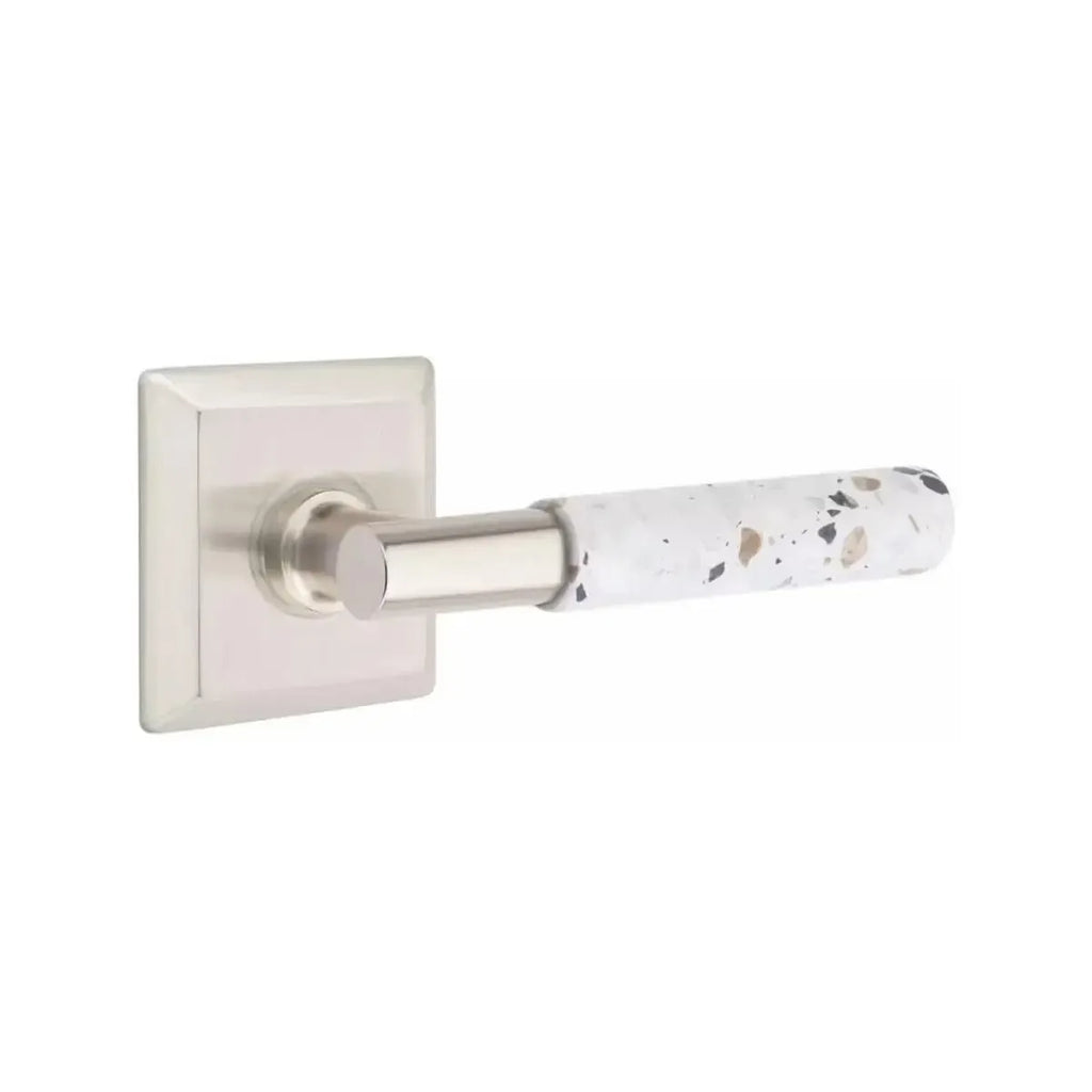 The Emtek Select T-Bar Hammered Lever with Modern Rectangular Rosette blends artisan texture with sleek contemporary lines. Its hammered finish adds handcrafted character, while the rectangular rosette sharpens the modern profile. Built with lasting strength, this lever is as durable as it is stylish. A perfect choice for homeowners and designers who want hardware that makes a bold, refined statement.