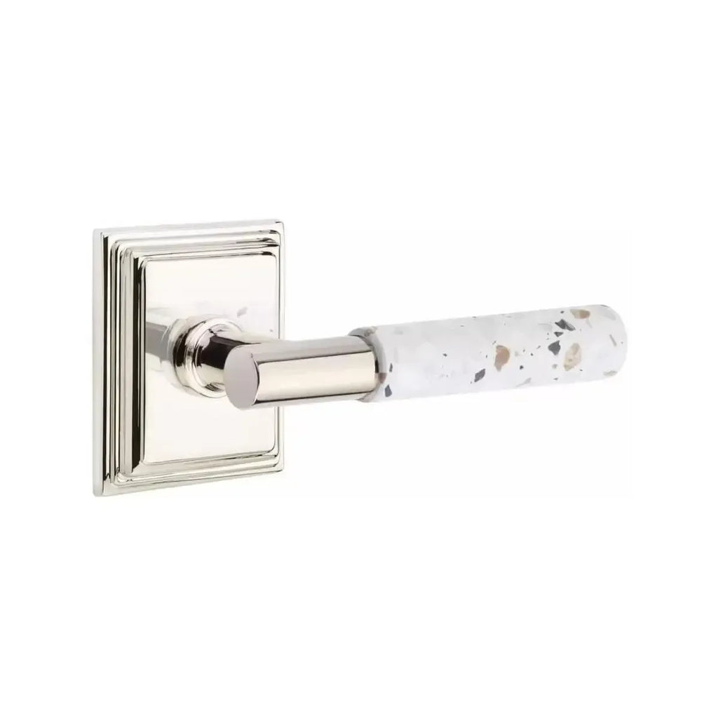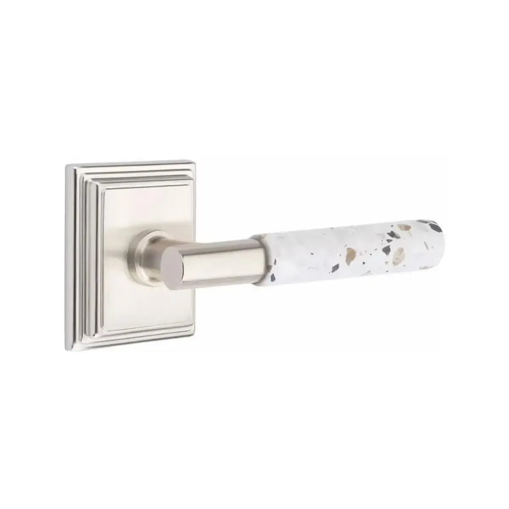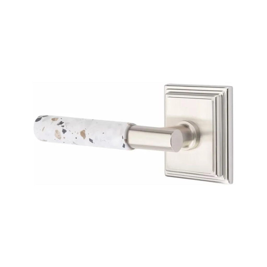 Natural stone texture meets timeless design in this distinctive lever. The Emtek Select T-Bar Terrazzo Lever with Wilshire Rosette combines terrazzo’s unique character with the refined detailing of the Wilshire base. Built for strength and style, it offers lasting performance with elevated elegance. A perfect choice for homeowners and designers who want hardware that makes a bold yet classic statement.