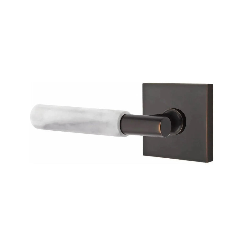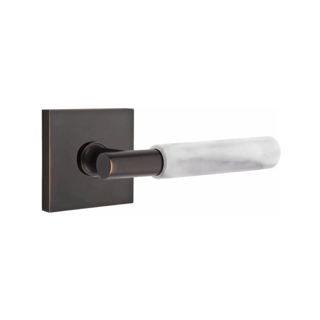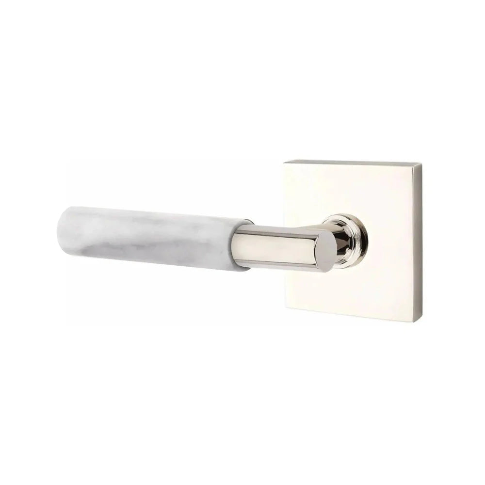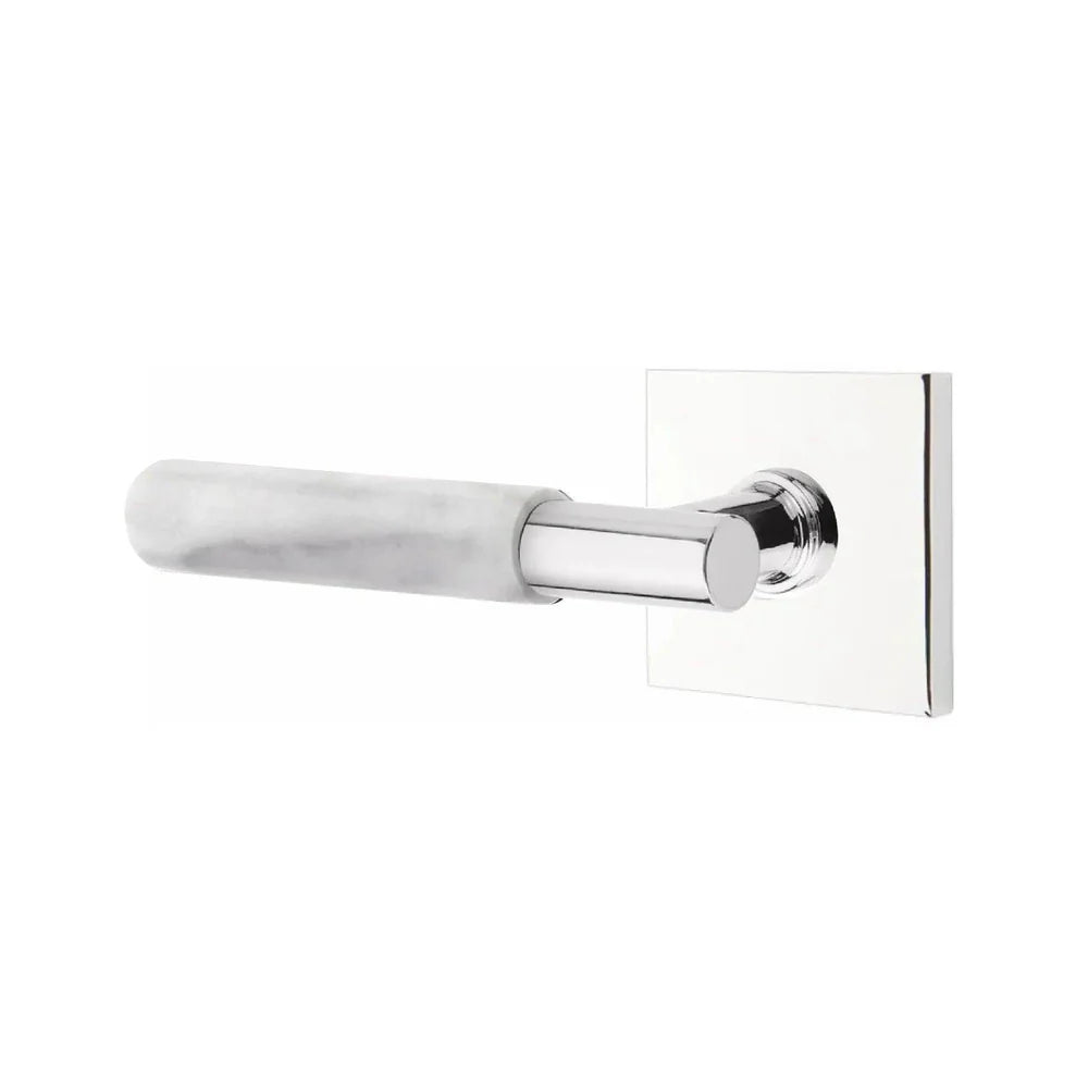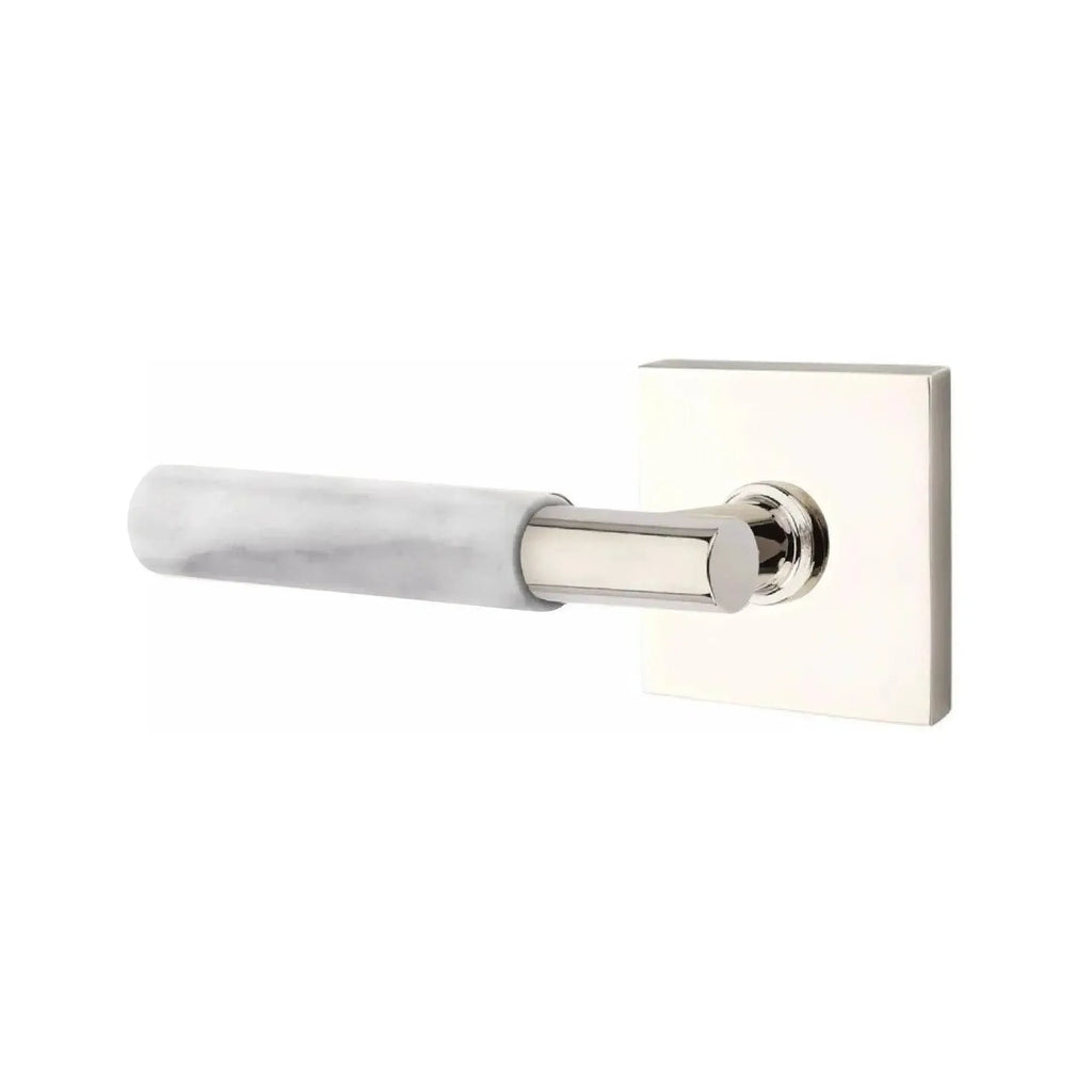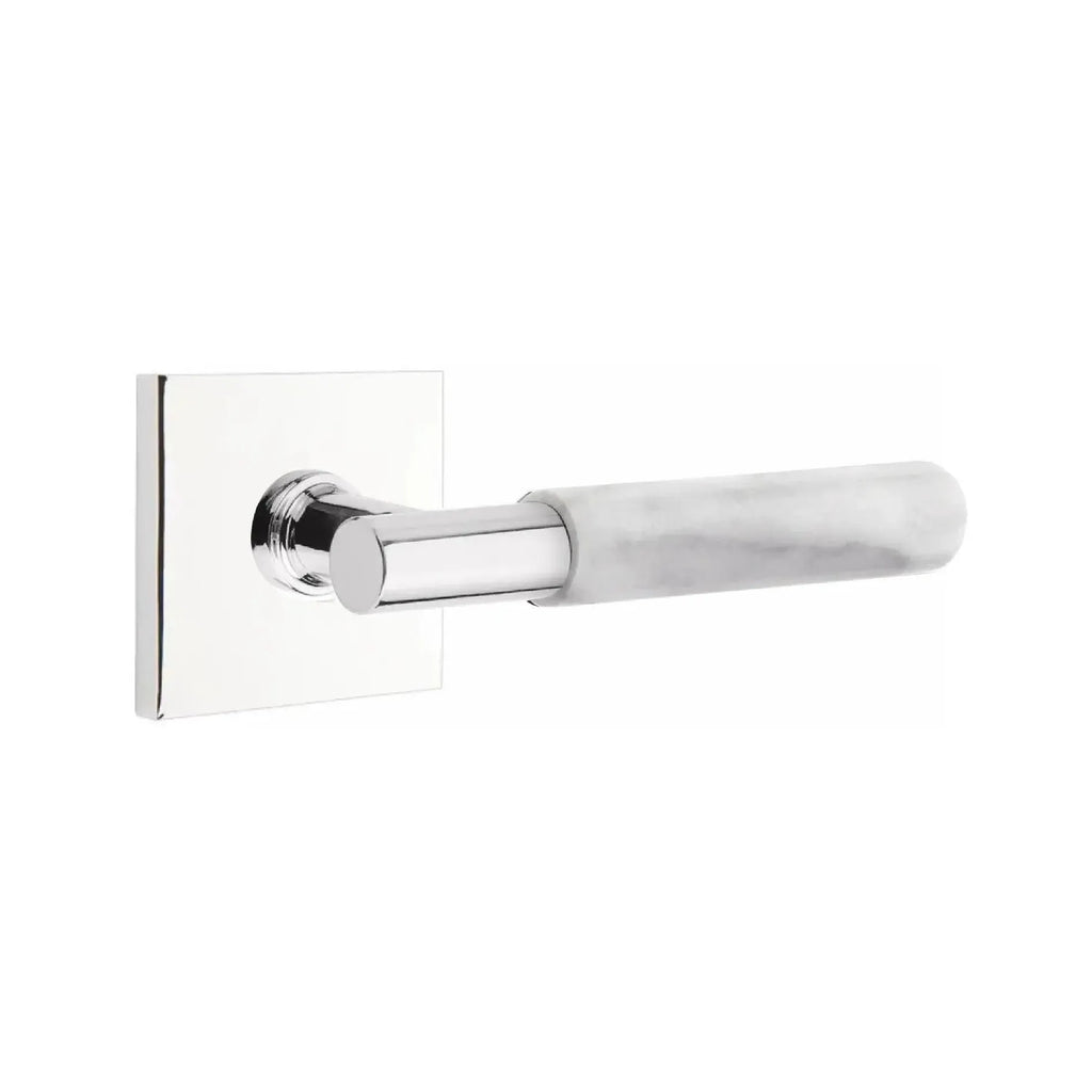 Crisp geometry and natural stone come together in this elegant lever. The Emtek Select T-Bar White Marble Lever with Square Rosette pairs bold T-Bar styling with the structured lines of a square base for a refined, contemporary look. Durable and unique, it’s the perfect choice for doors that deserve hardware with timeless sophistication.