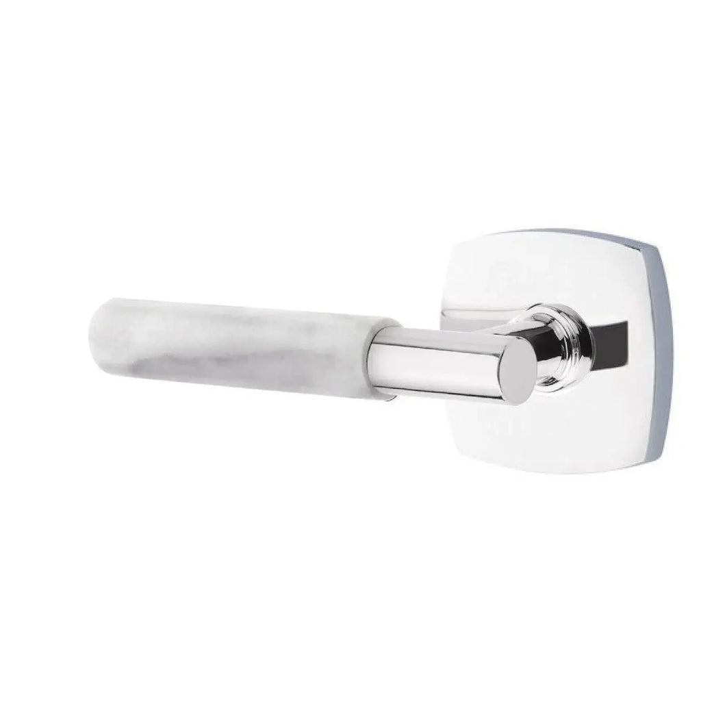 White marble brings a sense of timeless luxury to this distinctive lever. Paired with the sleek lines of the Urban Modern rosette, the design feels both elegant and contemporary. The Emtek Select T-Bar White Marble Lever with Urban Modern Rosette offers natural beauty, refined craftsmanship, and everyday durability. Its combination of bold T-Bar styling and marble’s unique veining ensures every piece is one of a kind. Perfect for homeowners and designers looking to add a touch of modern sophistication with a classic material.
