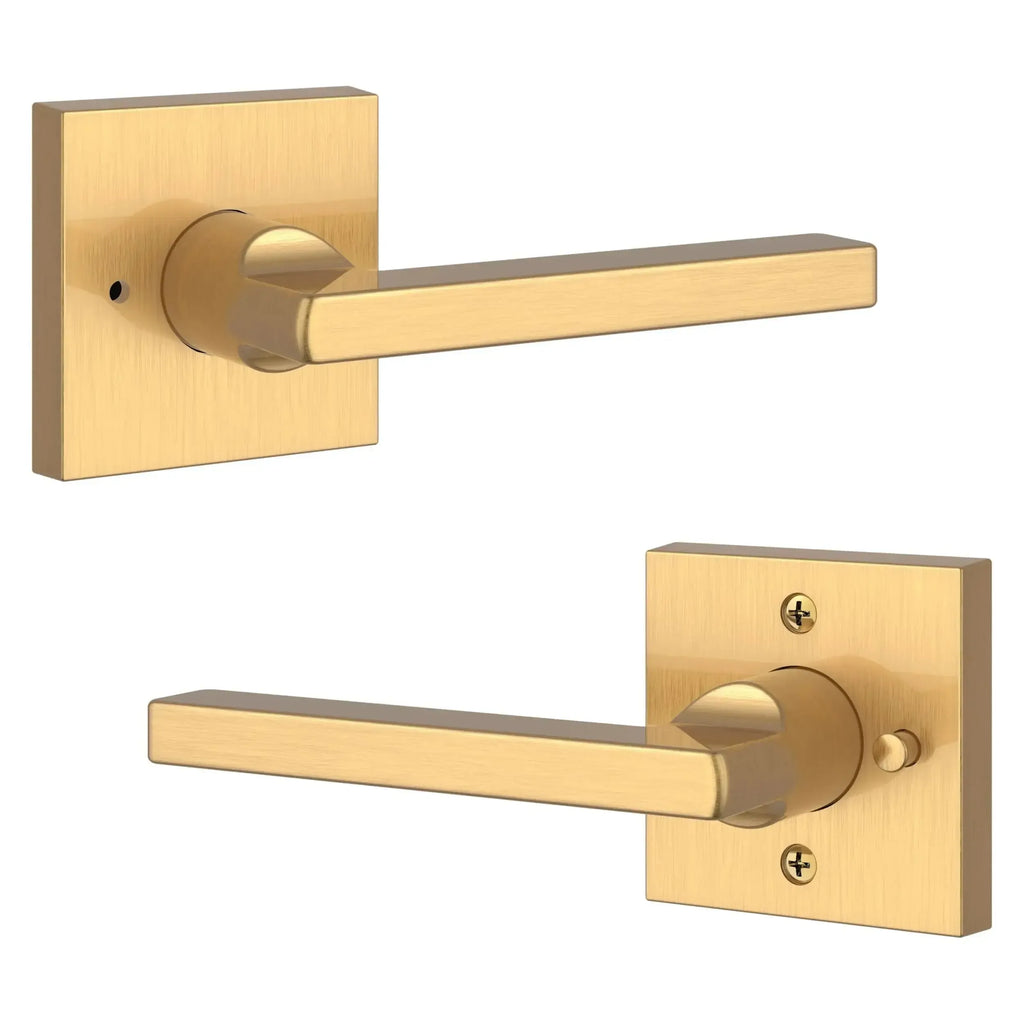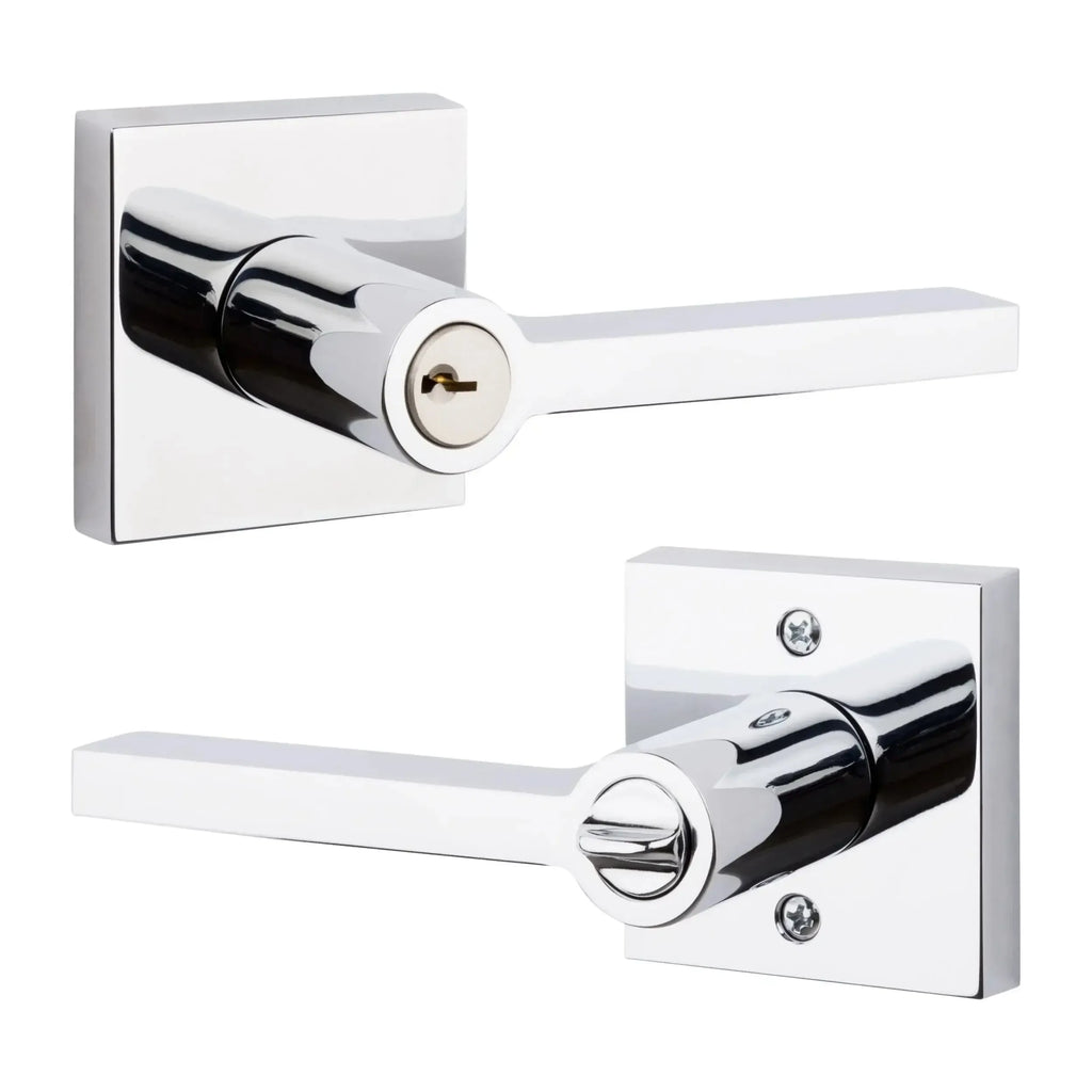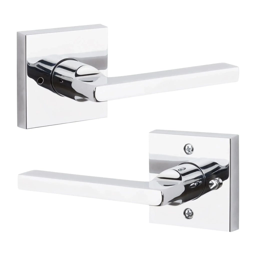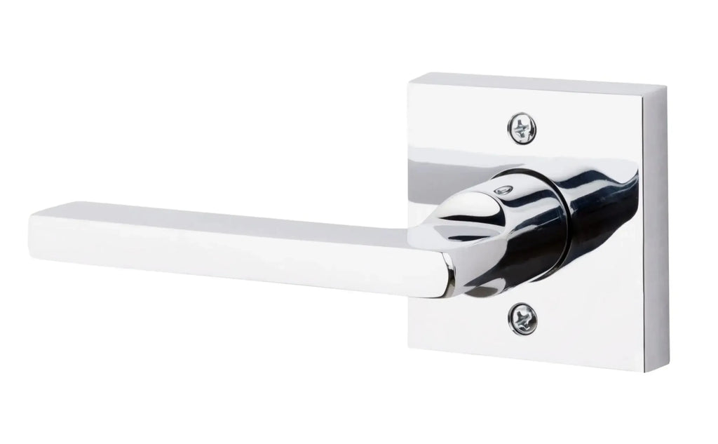 Perfect your doors with the Baldwin Reserve Square Lever, a bold statement of modern design. The clean lines of this minimalist square lever are perfectly complemented by a sleek, contemporary square rosette. Crafted from solid forged brass for unmatched quality and a luxurious feel, this elegant and durable choice is the perfect way to add a touch of sophistication to any modern or transitional space.