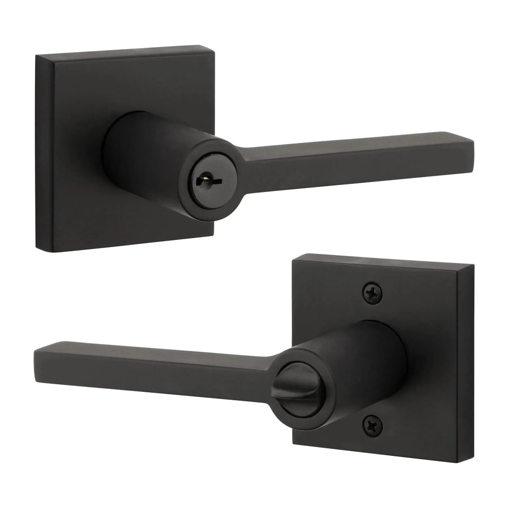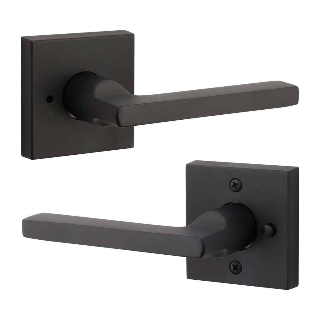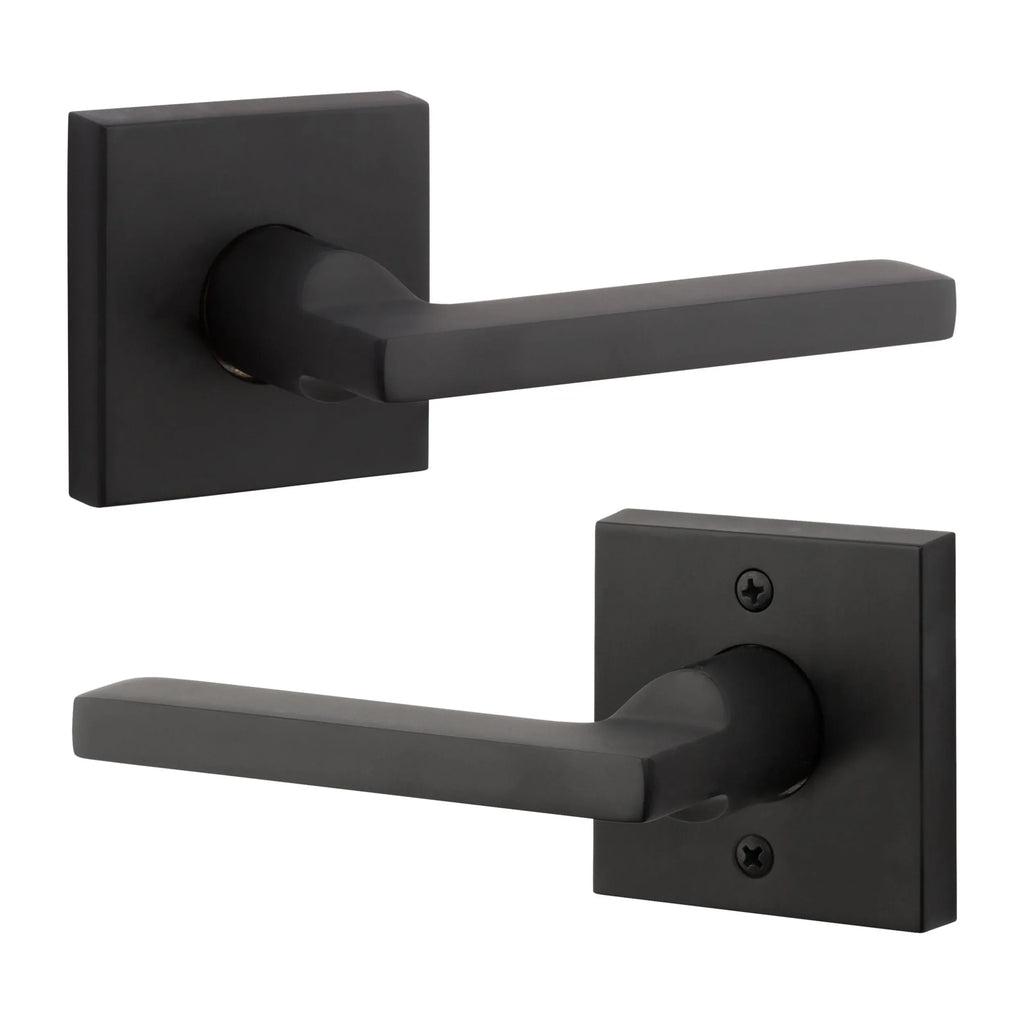 - Lever set paired with roses without a privacy lock to both close and secure any door with the 2 1/8" standard door preparation.