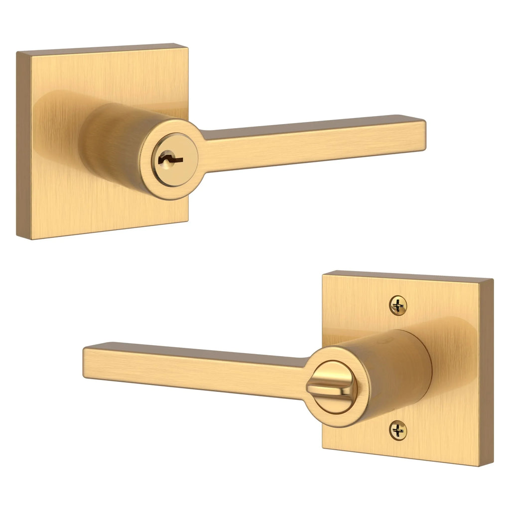 - Lever set paired with roses with a privacy or locking feature to fit the 2 1/8" standard door preparation.