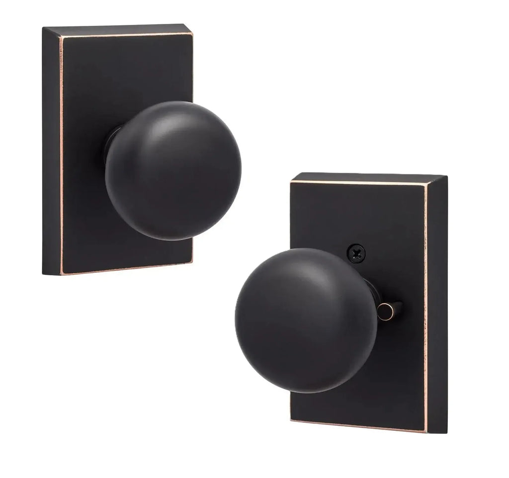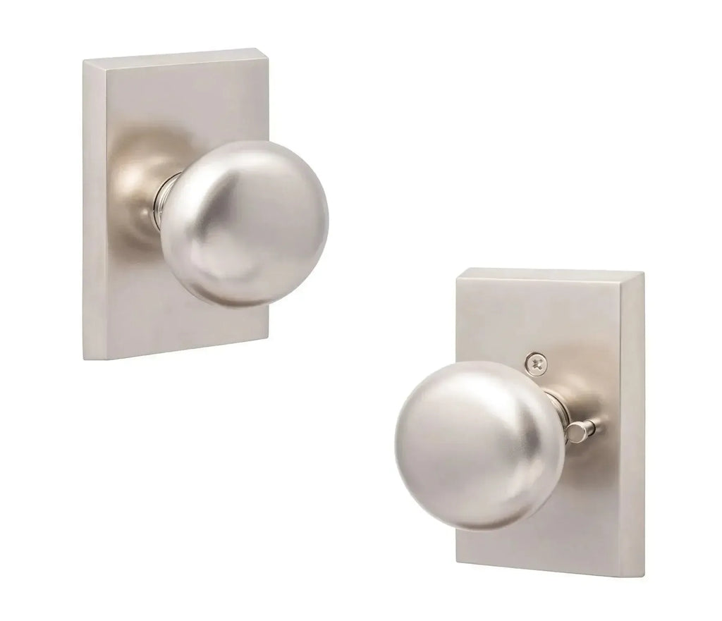 - Privacy knobs are ideal for bedrooms or bathrooms. Locked by push pin. Unlocked by push pin, knob turn, or emergency pin outside