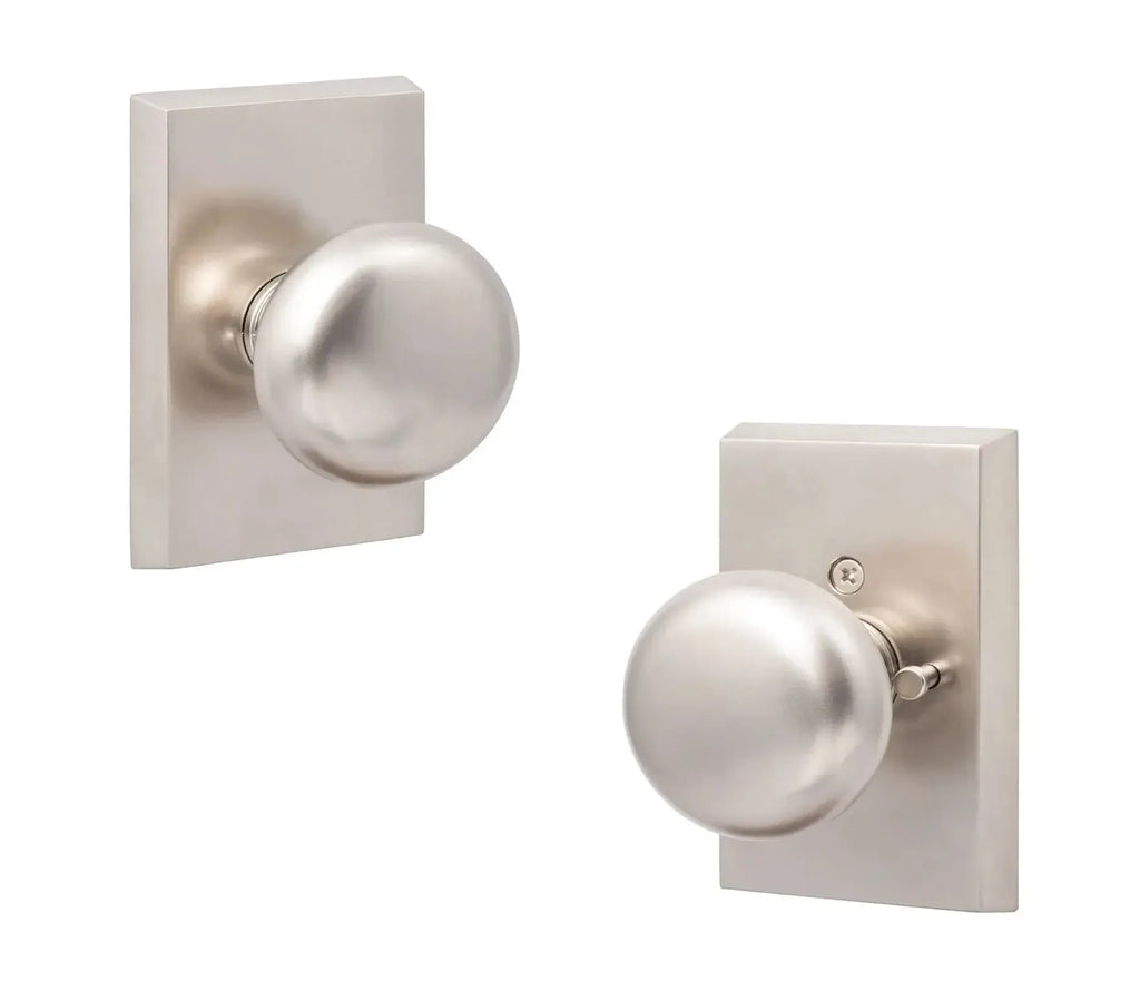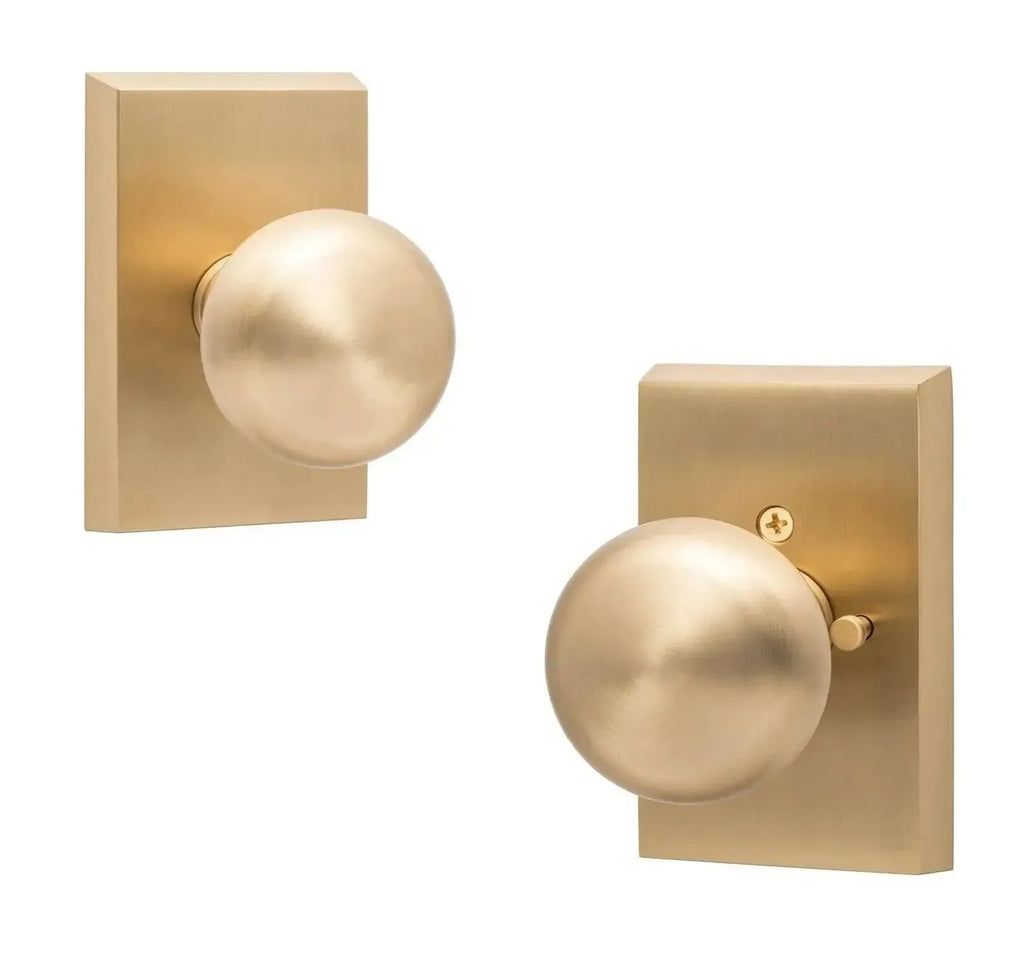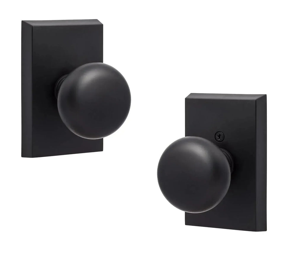 - Includes Two Door Knobs, Latch, Strike, and Installation Hardware