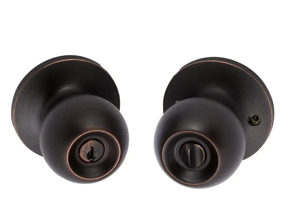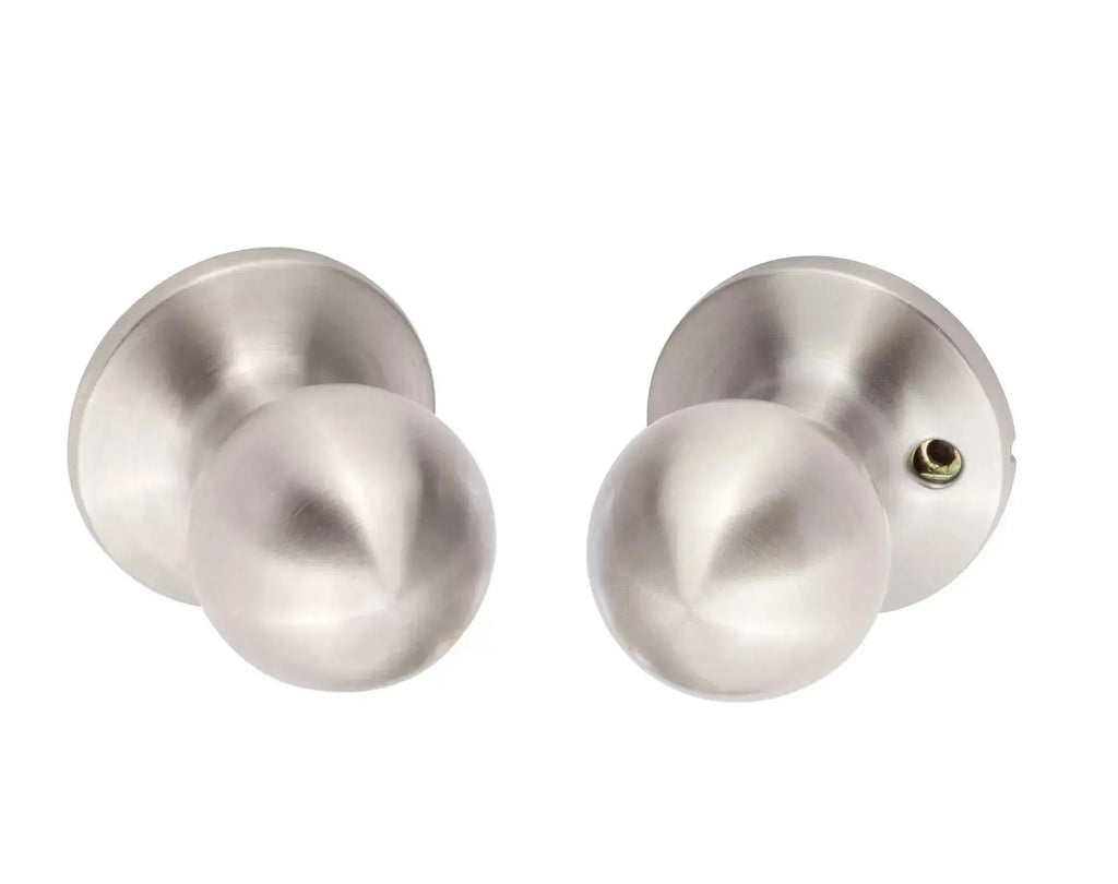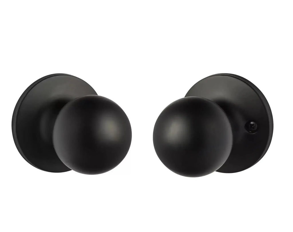- Includes Two Door Knobs, Latch, Strike, and Installation Hardware