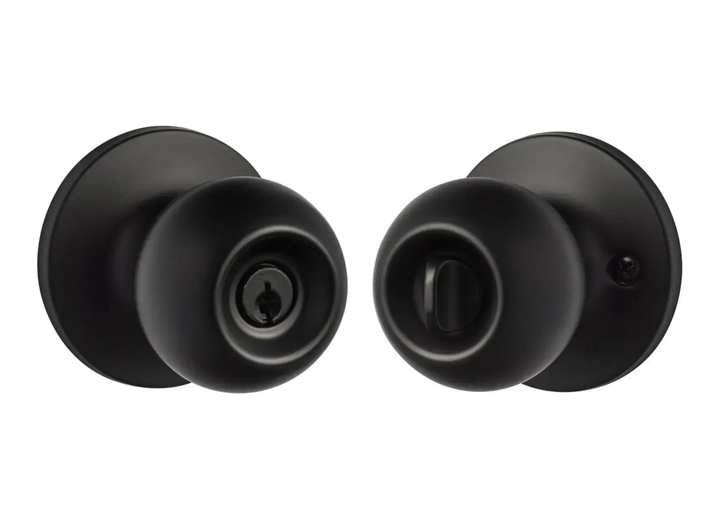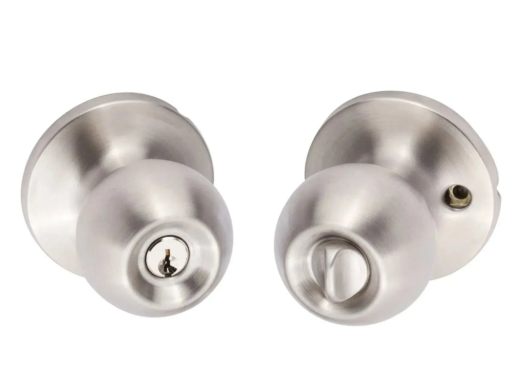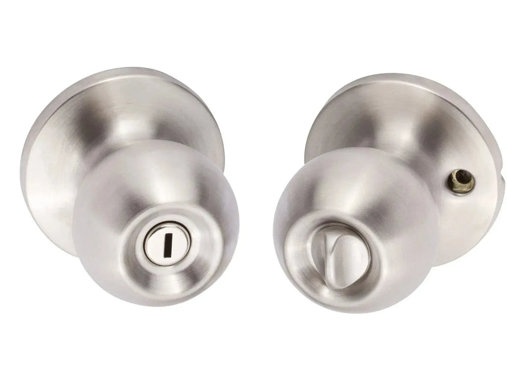 - Privacy knobs are ideal for bedrooms or bathrooms. Locked by finger turn. Unlocked by finger turn or coin slot from the outside