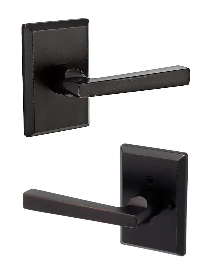The Baldwin Reserve Taper Lever with Rustic Square Rosette combines sleek sophistication with rugged texture. Its slim, tapered handle contrasts beautifully with the raw, squared-off rosette for a look that’s both modern and grounded. Perfect for spaces that blend clean lines with organic character.