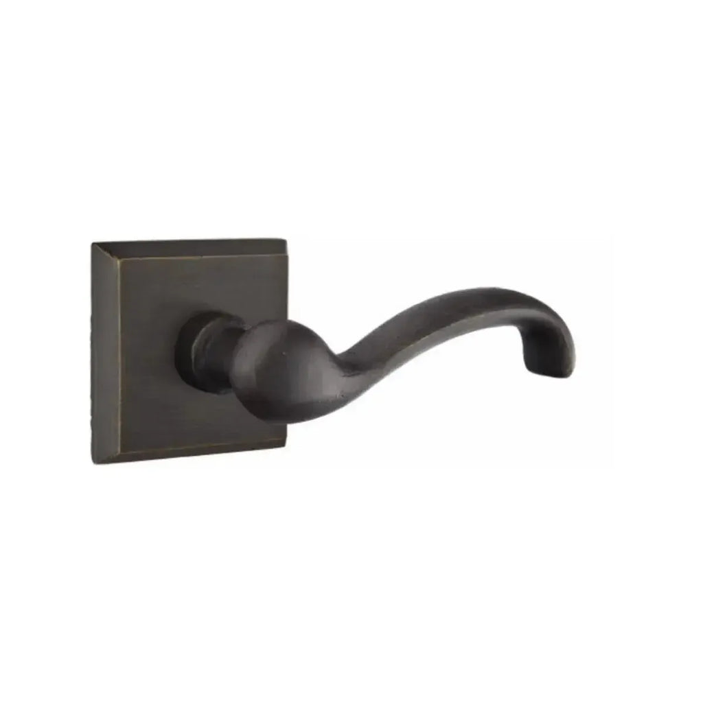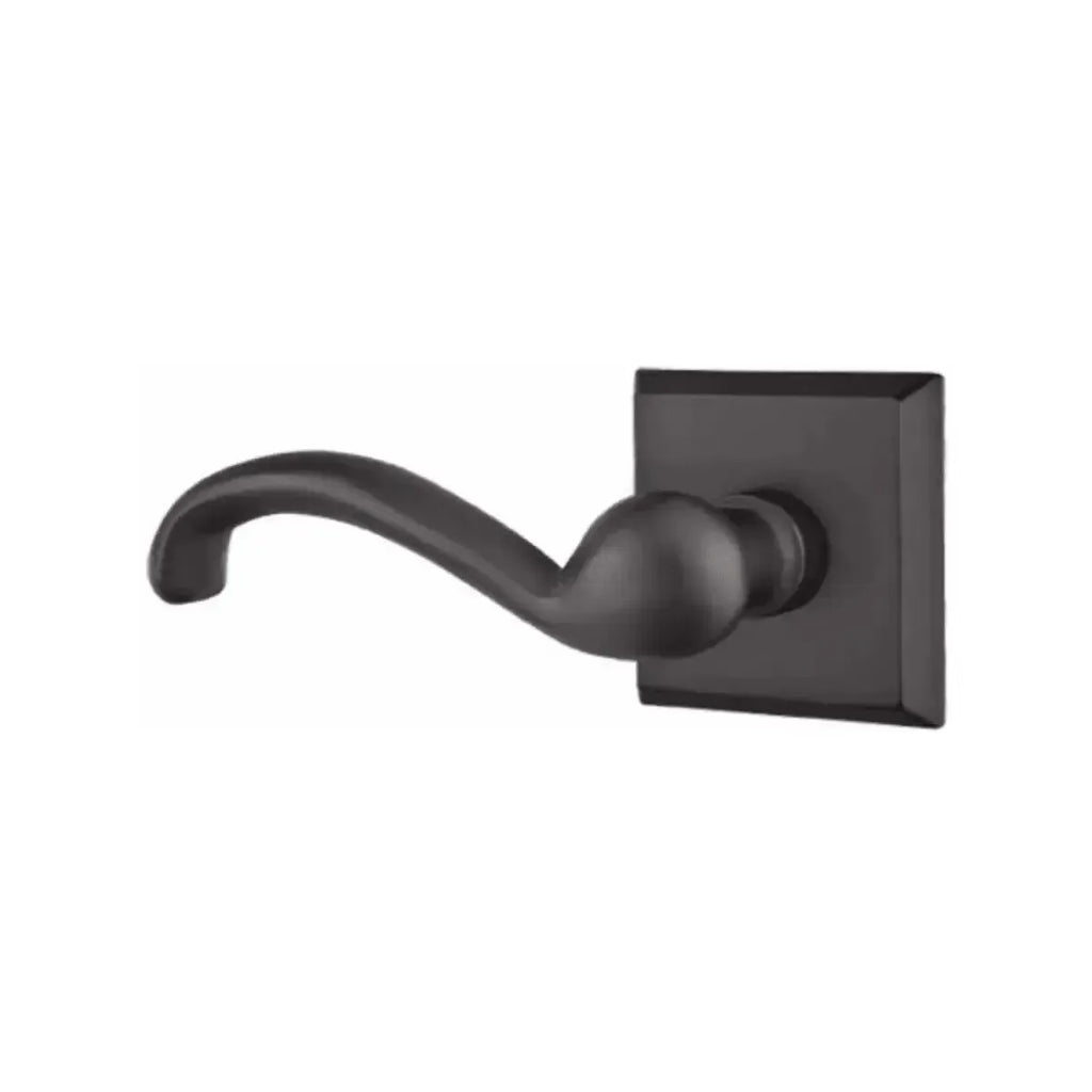 Upgrade your doors with the Emtek Teton Lever with #6 Rosette. This combination features the rustic charm of the Teton Lever and the clean, classic look of the #6 Rosette. Available in various finishes like flat black and satin brass, this durable hardware is perfect for any home style.