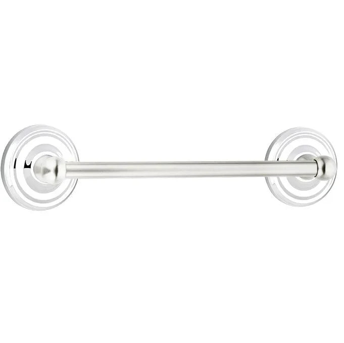 Classic and elegant, this Traditional Brass Towel Bar with a Regular Rosette brings timeless style to any bathroom. The smooth, rounded rosette complements the sturdy brass construction, ensuring both durability and a refined look. Designed for everyday functionality, this towel bar provides a reliable and stylish way to keep towels neatly displayed. Available in a variety of finishes to match your décor.