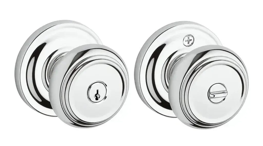 - Knob set paired with roses without a privacy lock to both close and secure any door with the 2 1/8" standard door preparation.