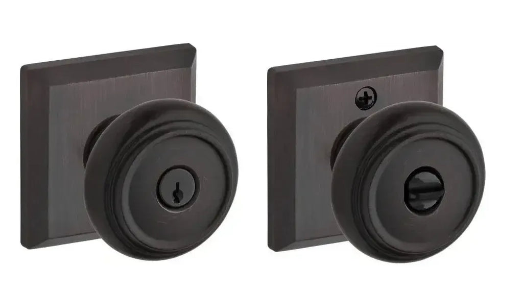 - Knob set paired with roses without a privacy lock to both close and secure any door with the 2 1/8" standard door preparation.