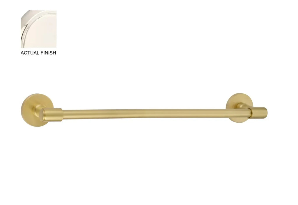 A perfect blend of classic and modern design, this Emtek Transitional Brass Towel Bar with a Small Disc Rosette brings both elegance and practicality to your bathroom. The small disc rosette adds a sleek, subtle detail that complements the sturdy brass construction. Durable and stylish, this towel bar is designed to stand the test of time while keeping your towels neatly organized. Available in a variety of finishes to match your décor.