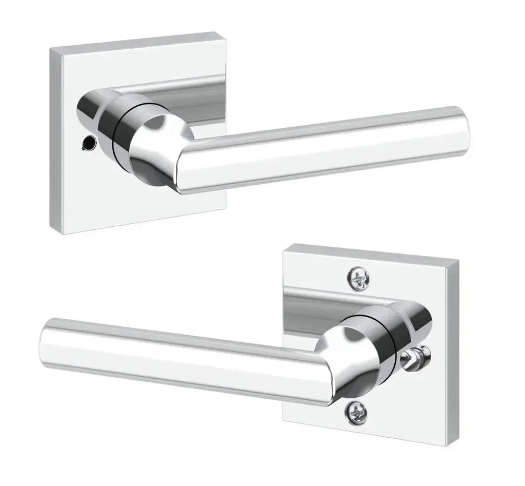 - Lever set paired with roses with a privacy or locking feature to fit the 2 1/8" standard door preparation.
